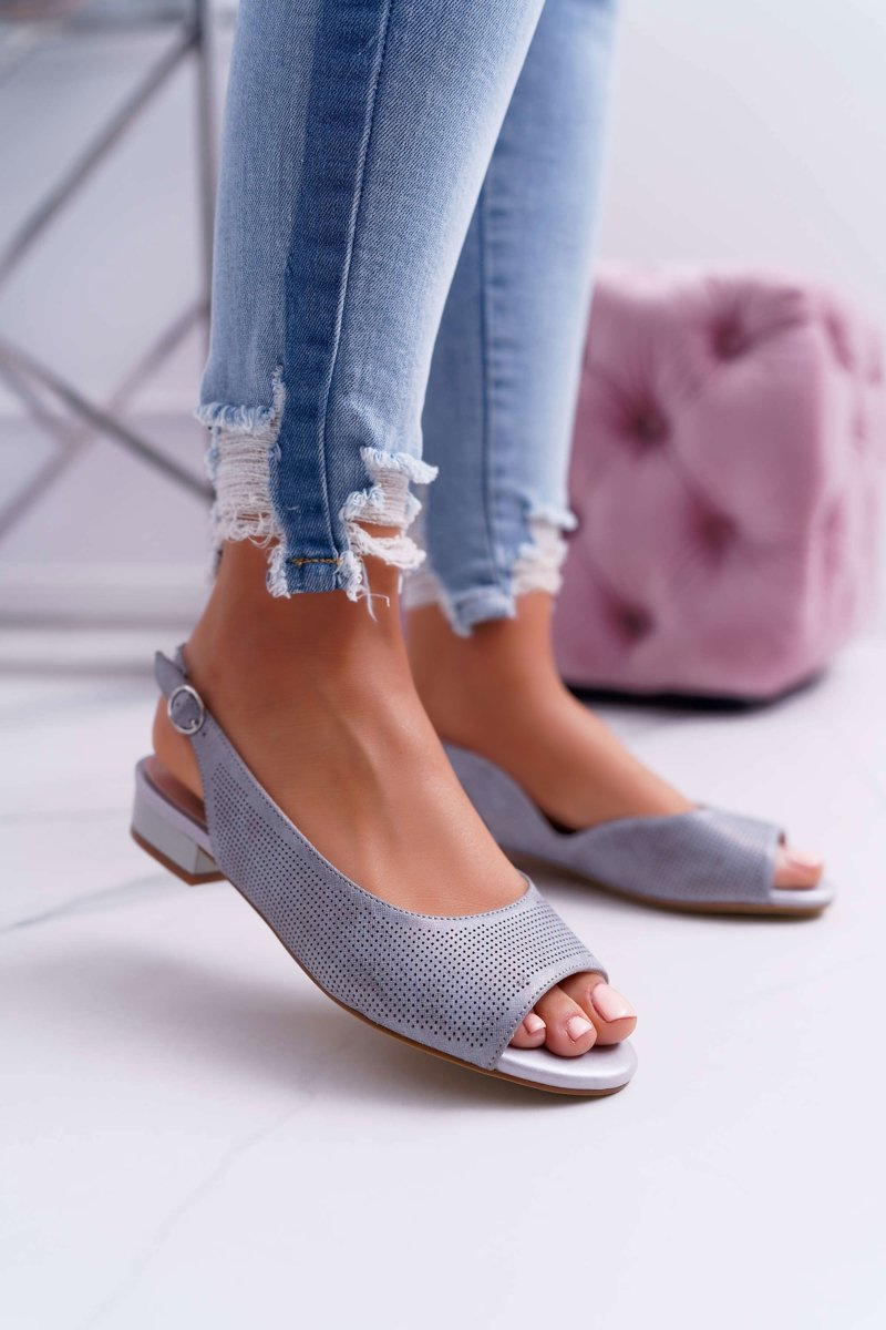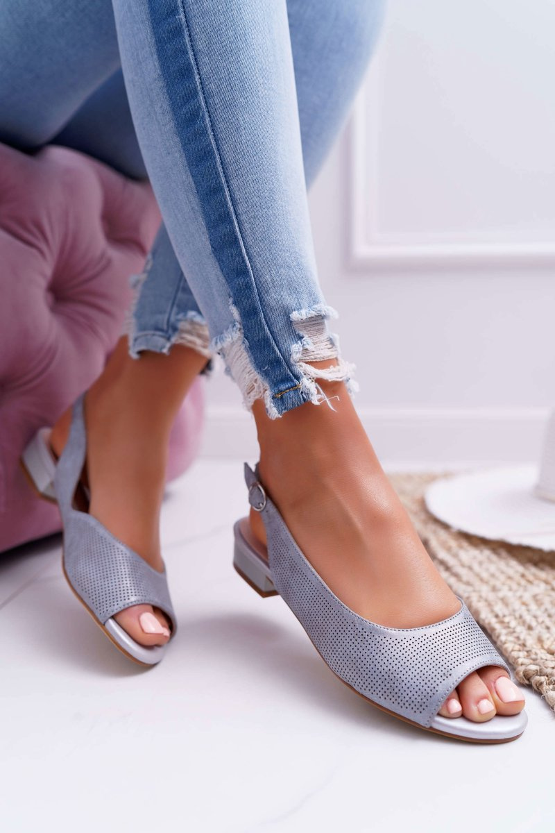 Sandały Damskie Płaski Obcas Sergio Leone SK809 Szare Skaldo