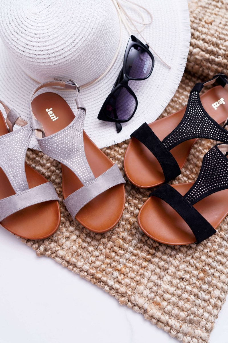 Klasyczne a zarazem eleganckie sandały, sprawdzą się w każdej codziennej sytuacji. Będą również świetnym wyborem podczas tych bardziej formalnych spotkań. Posiadają zdobienie w postaci drobnych cyrkonii. Zapinane na pasek wokół kostki. Przy wyborze rozmiaru prosimy sugerować się tabelą rozmiarów, która dostępna jest po najechaniu bądź kliknięciu w dany rozmiar.