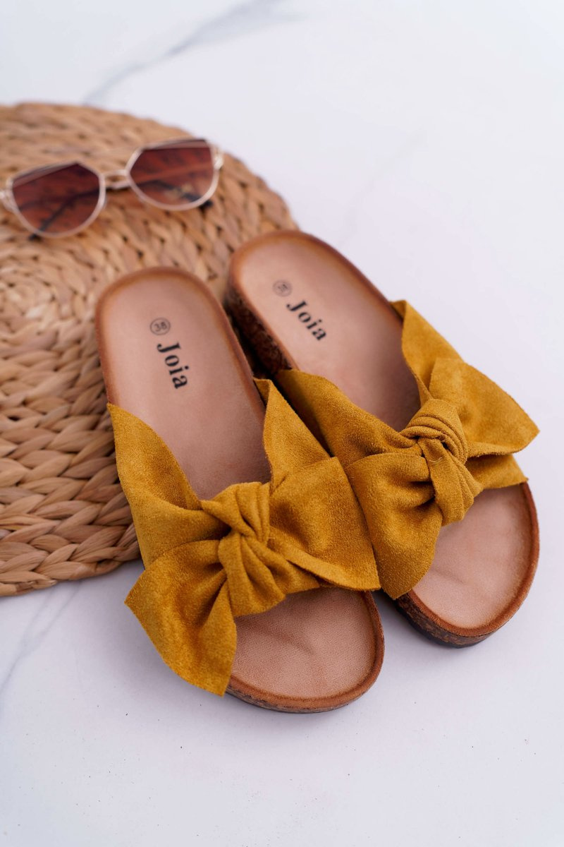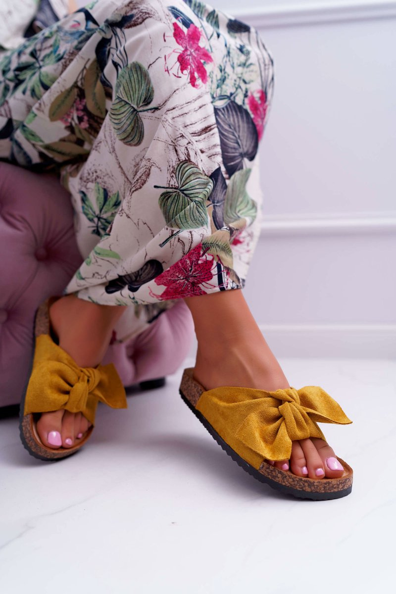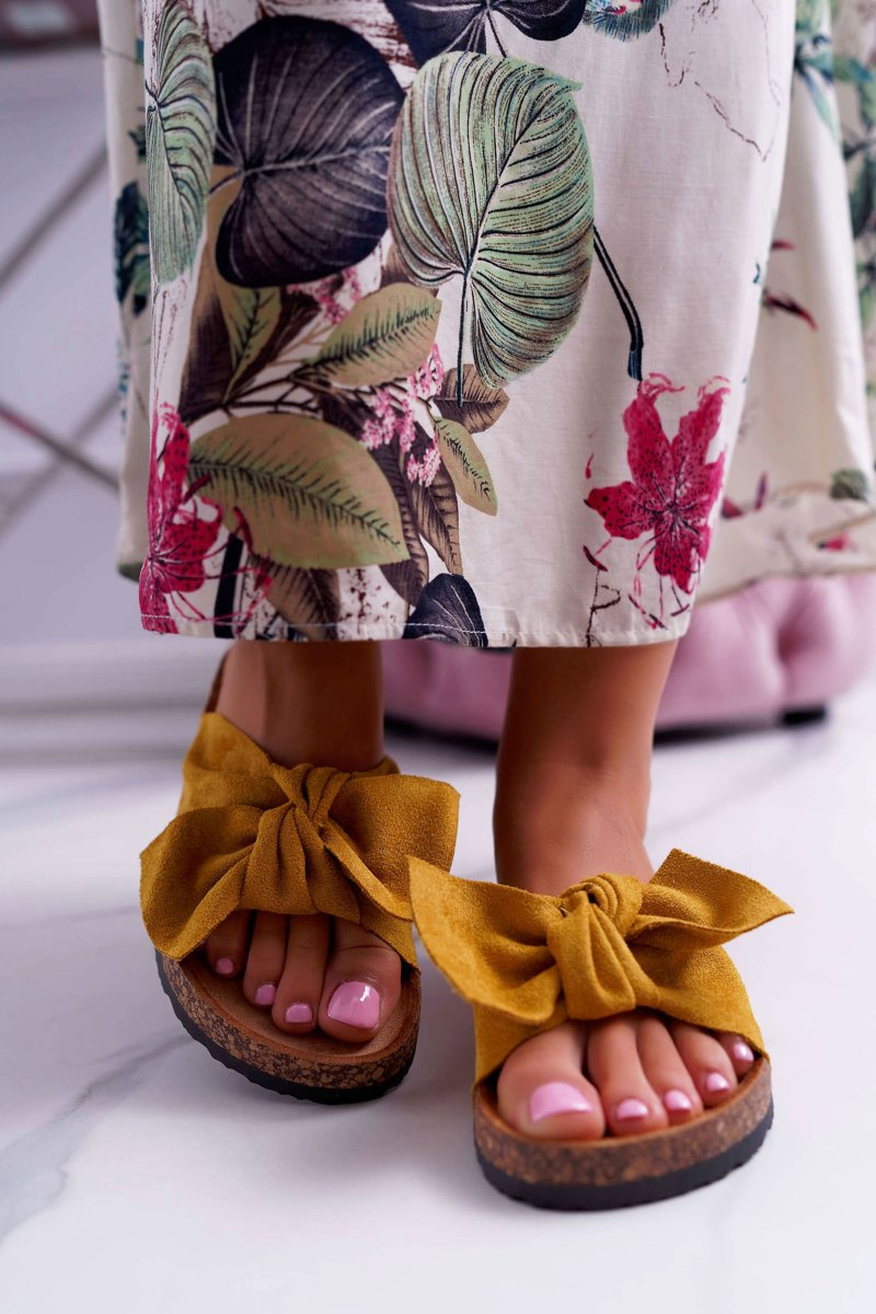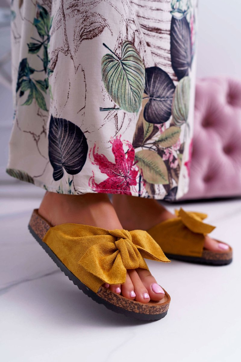 Damskie Klapki Na Korku Kokarda Żółte Randy