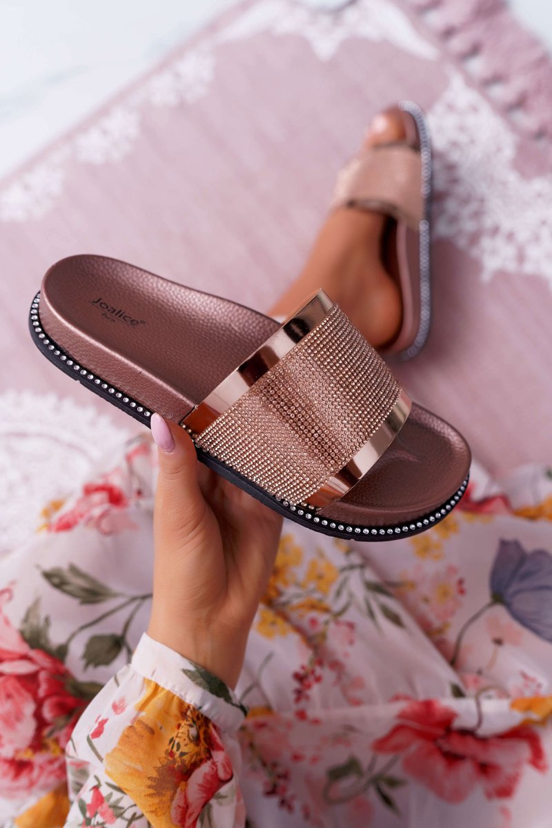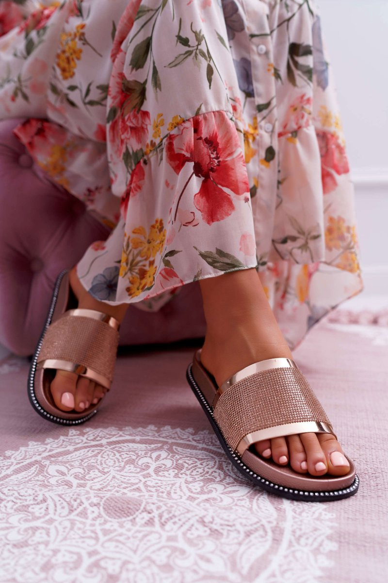 Klapki Damskie Profilowane Z Cyrkoniami Champagne Rentre