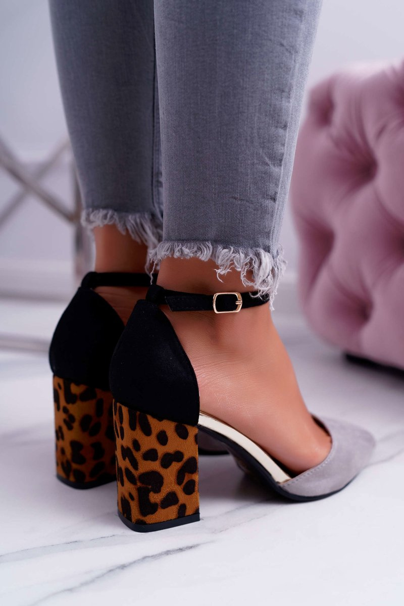 Czółenka Damskie Na Słupku Panterki Szare Ferri