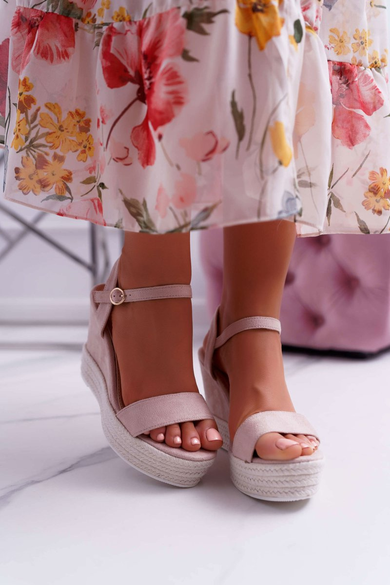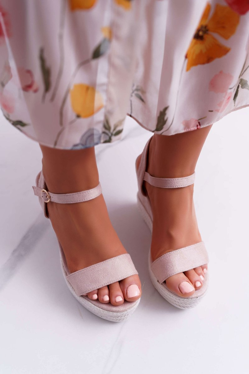 Sandały Damskie Na Koturnie Lniane Beżowe Liviana
