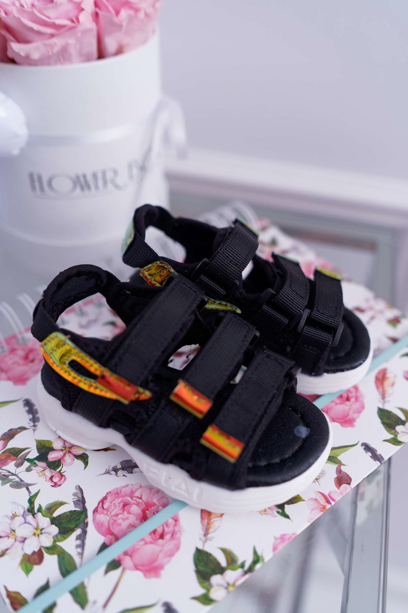Dziecięce Sandały Na Rzepy Dla Dziewczynki Chłopca Czarne Kimmi