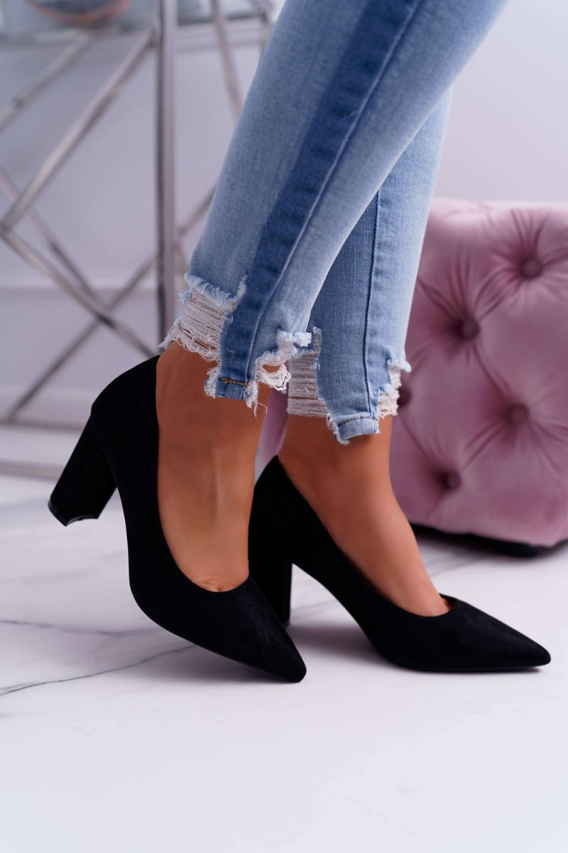 Czółenka Damskie Na Słupku Zamszowe Czarne Eriela