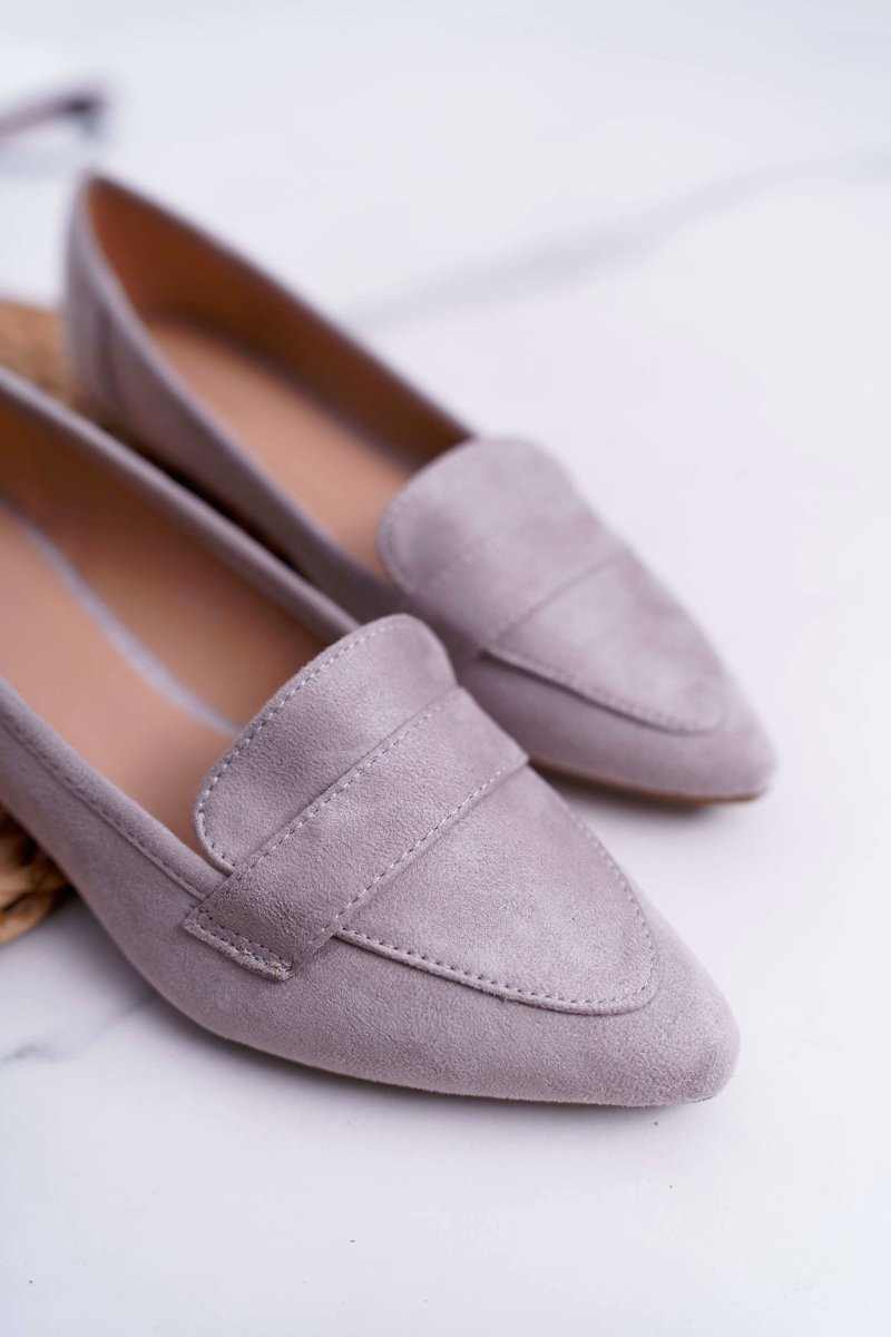 Damskie Balerinki Zamszowe Lordsy Szare Gretar