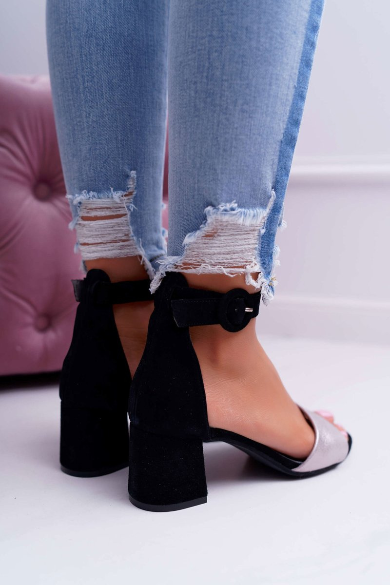 Skórzane Sandały Na Obcasie Maciejka 04141-01 Czarne