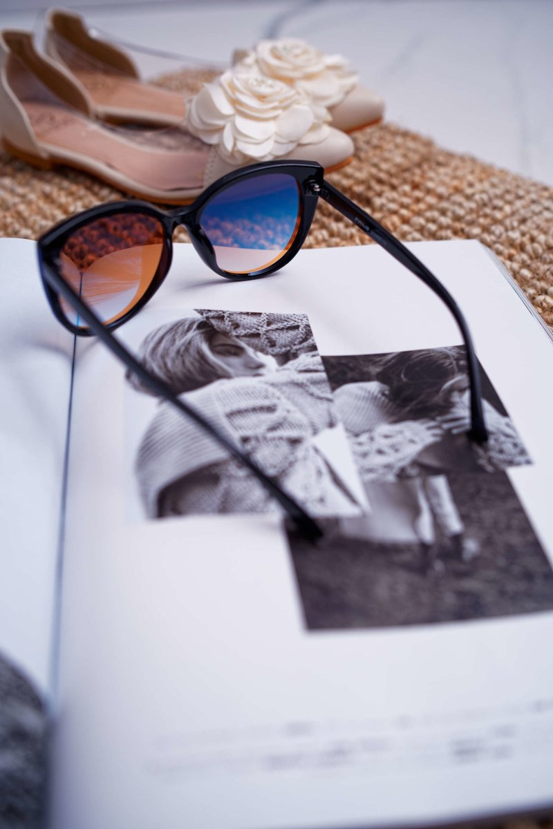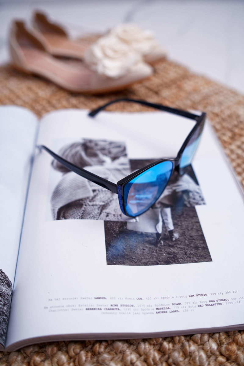 Okulary Przeciwsłoneczne Prius PR-V26 Czarne Niebieskie Szkła Granatowy Brokat