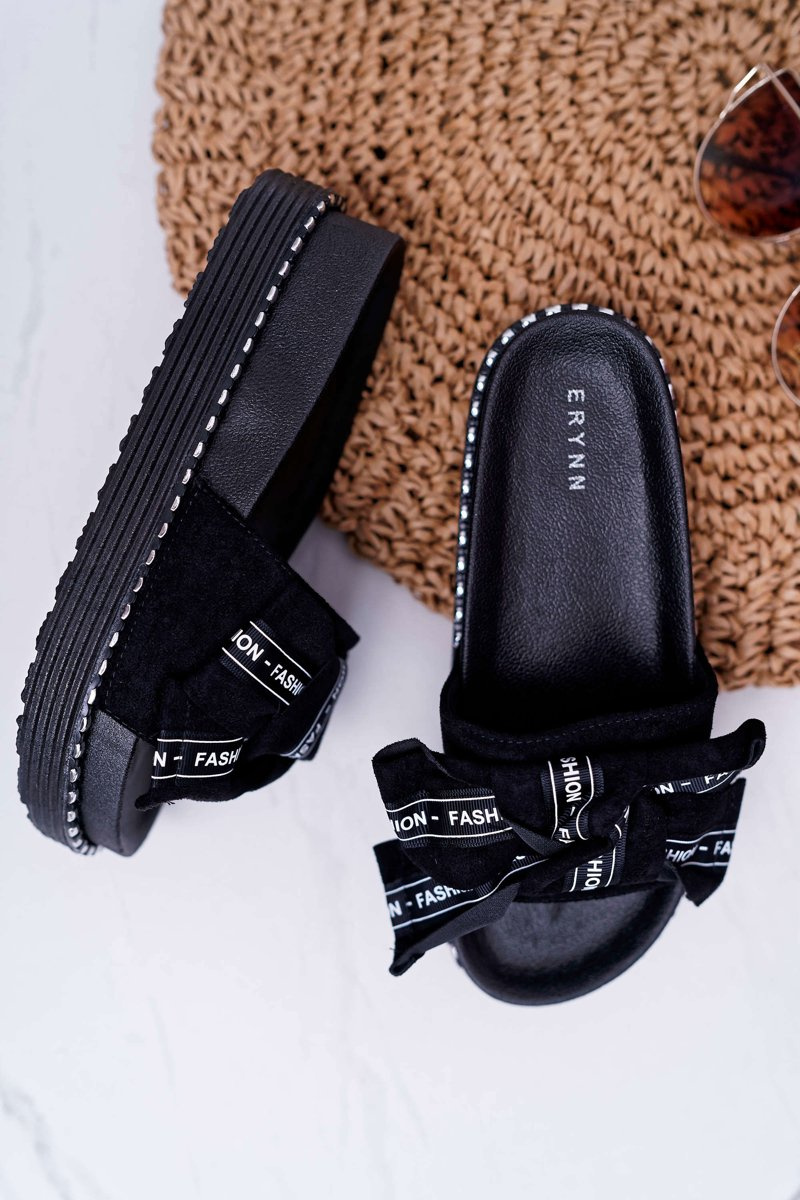 Damskie Klapki Profilowana Wkładka Z Kokardką Czarne Vrenya