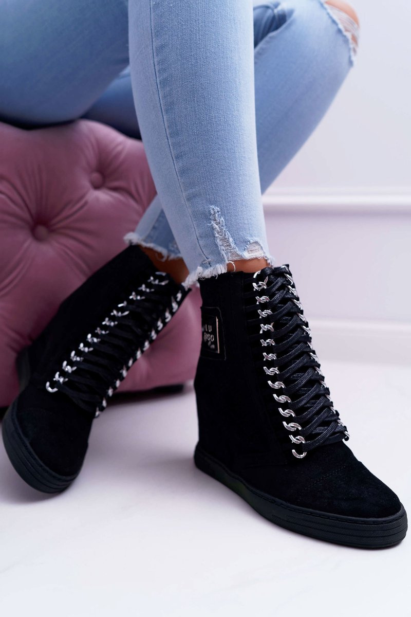 Damskie Sneakersy Lu Boo Ażurowe Zamszowe Czarne Clamma