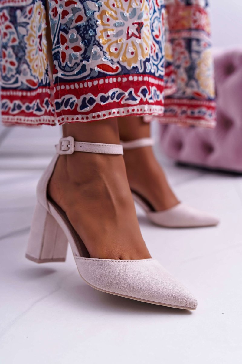 Czółenka Damskie Na Słupku Zamszowe Beżowe Harye