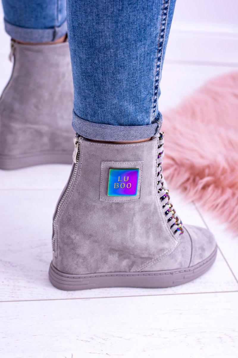 Sneakersy damskie Lu Boo Szare Zamszowe z Opalizującymi Łańcuchami Monica