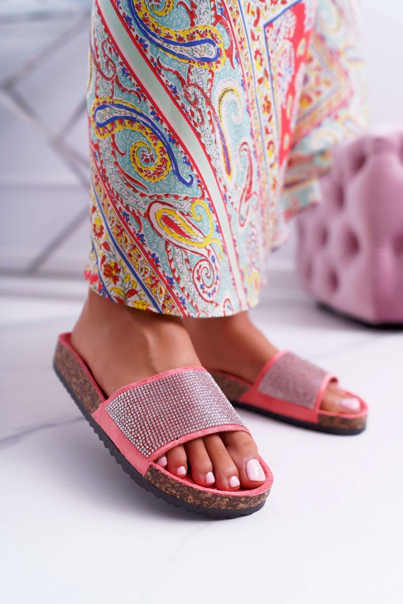 Damskie Klapki Na Korku Z Kryształkami Koralowe Do It!
