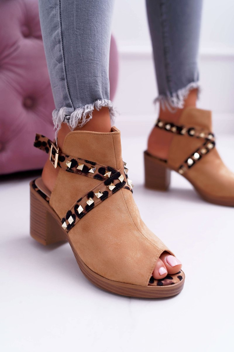 Sandały Damskie Na Słupku Lu Boo Z Cholewką Camel 318-30 Fiode