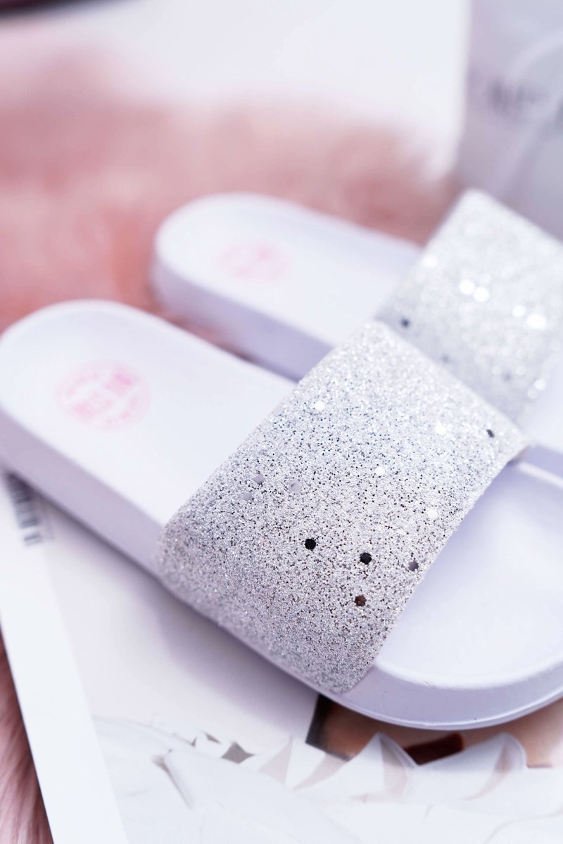 Klapki Dziecięce Młodzieżowe Big Star Białe Brokatowe AA374086