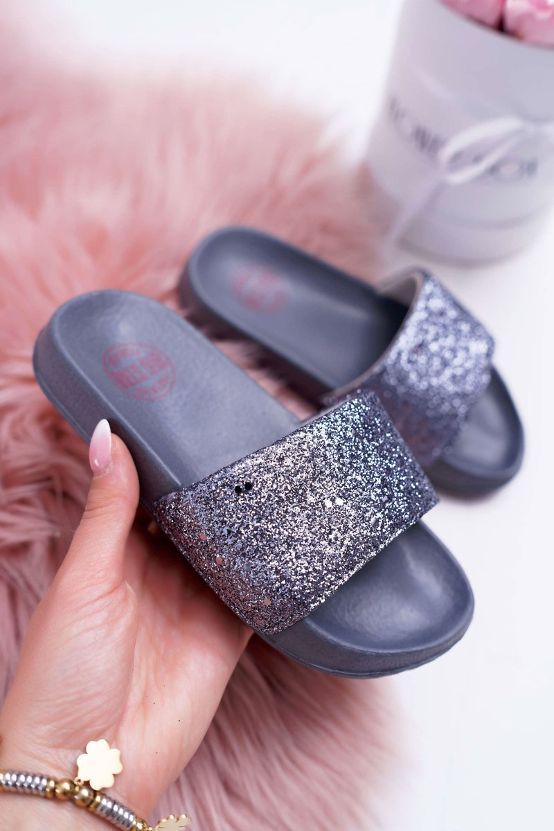 Klapki Dziecięce Młodzieżowe Big Star Szare Brokatowe AA374087