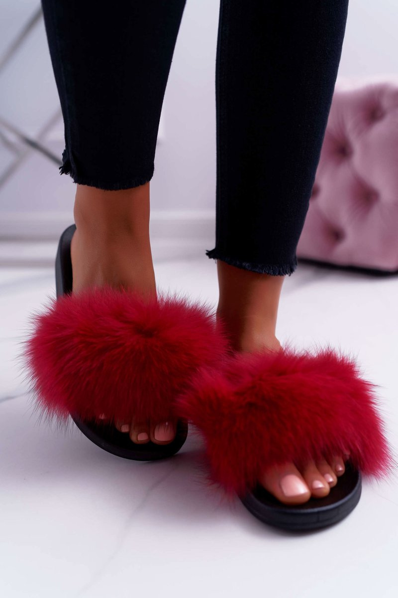 Damskie Klapki z Naturalnym Futerkiem Czerwone Naturis