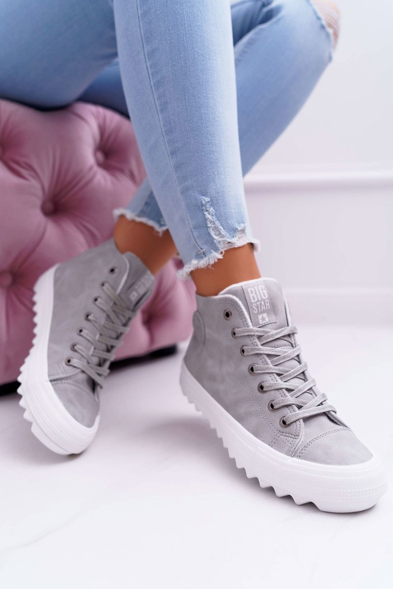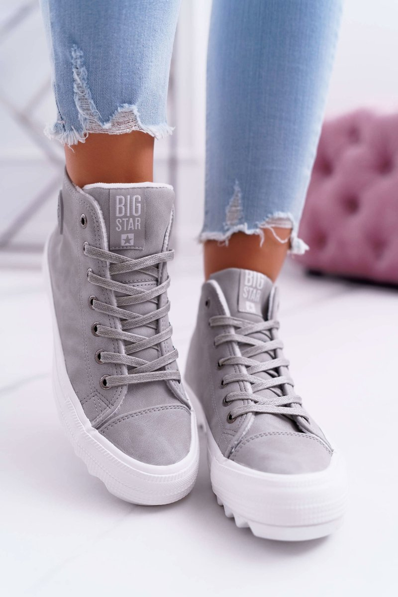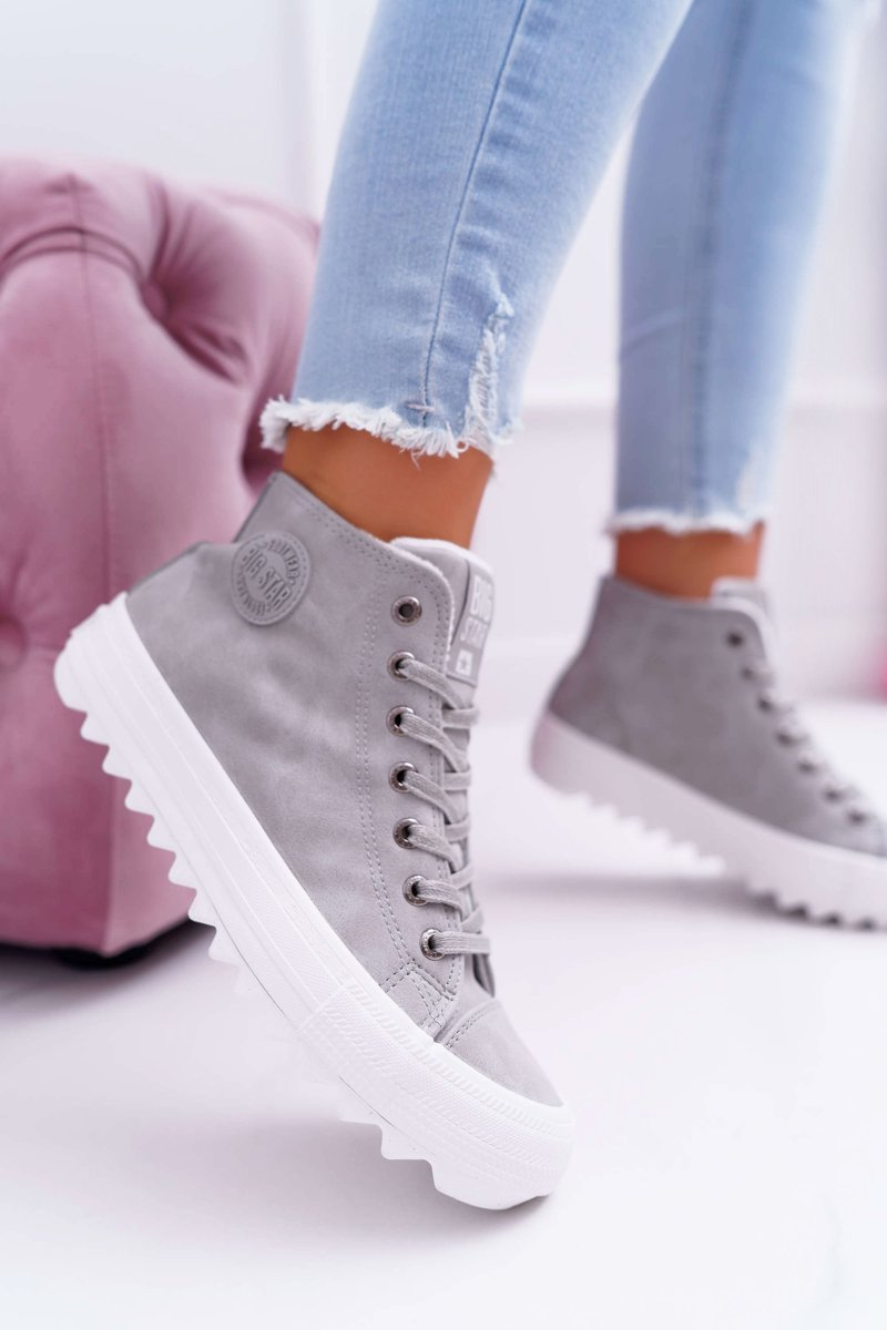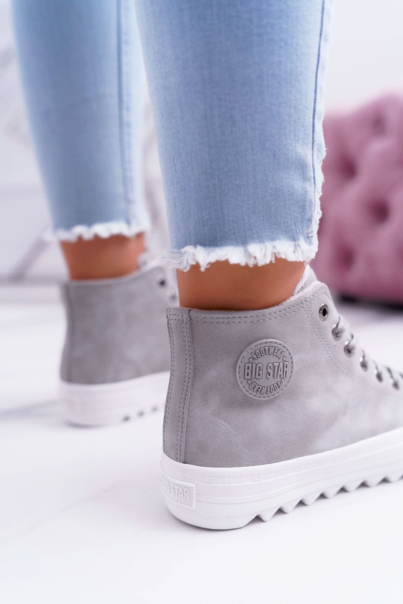 Trampki Damskie Big Star Wysokie Ocieplane Szare EE274114