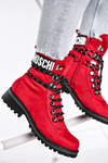 Botki Damskie Płaski Obcas Na Suwak Czerwone Popsi