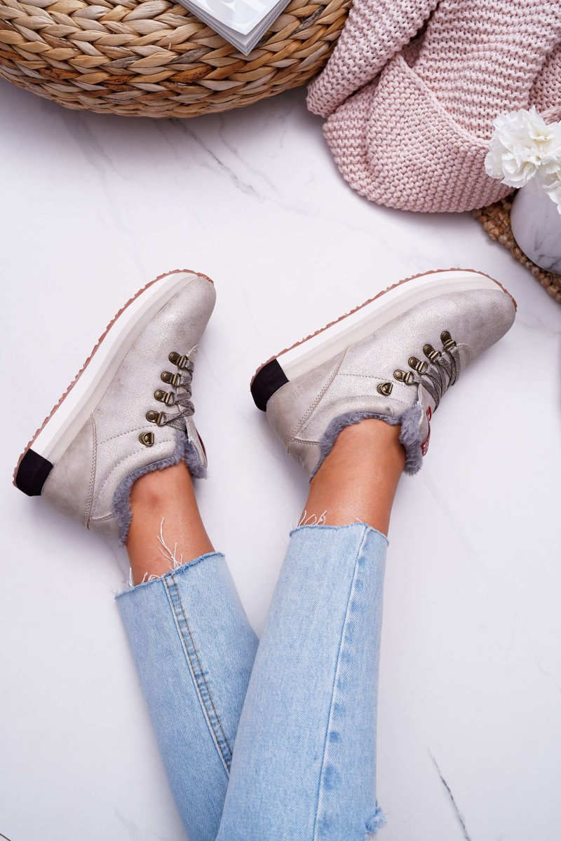 Stylowe sportowe obuwie od firmy Big Star, teraz w nowej odsłonie! Stylowy wygląd z obszyciem z futerka wokół cholewki. Obuwie osadzone na wysokiej podeszwie. Przy wyborze rozmiaru prosimy sugerować się tabelą rozmiarów dostępną po najechaniu bądź kliknięciu na dany rozmiar.