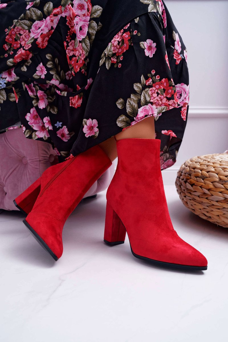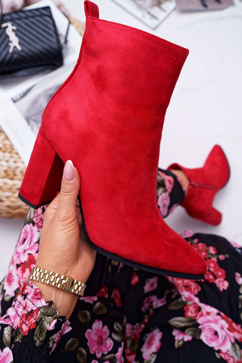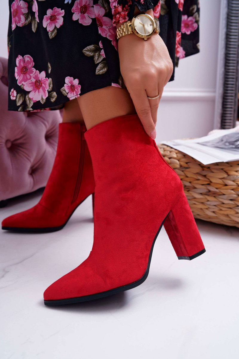 Botki Damskie Na Słupku Suwak W Szpic Czerwone Ferol