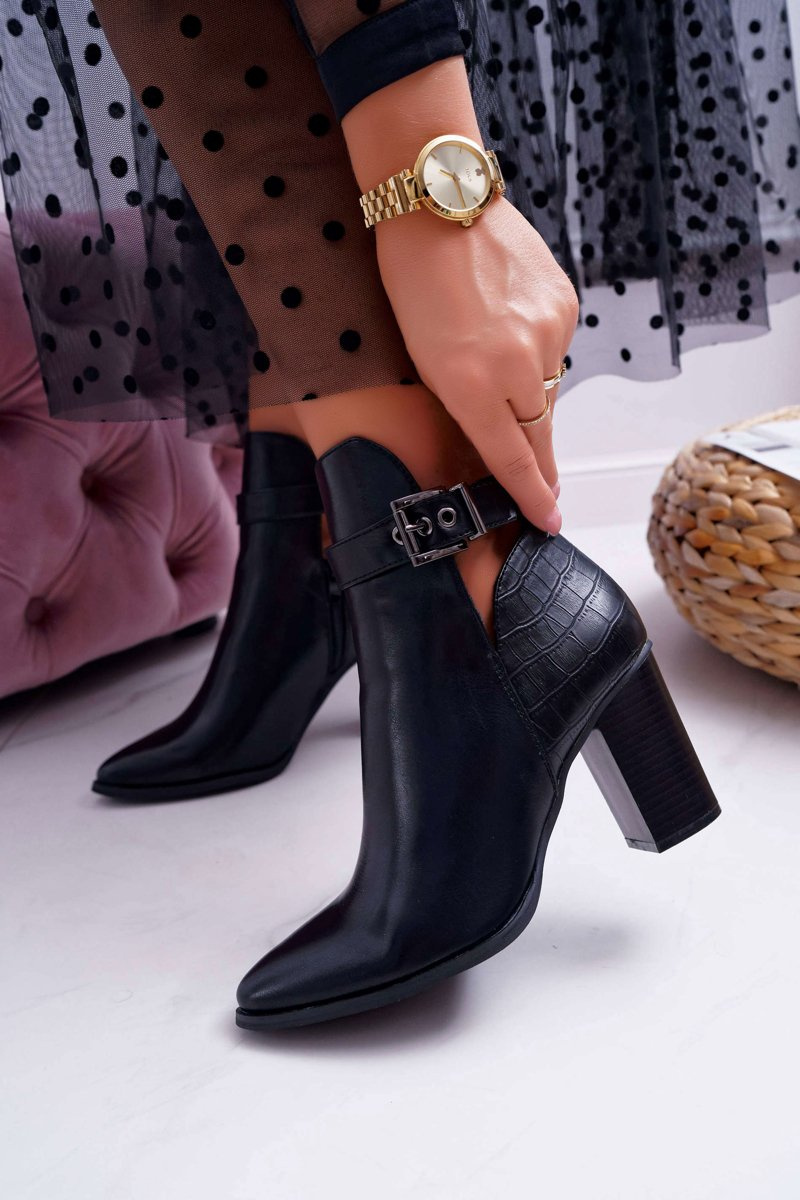 Botki Damskie Na Obcasie Czarne Getren