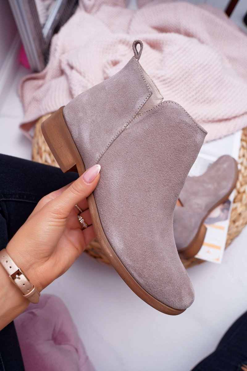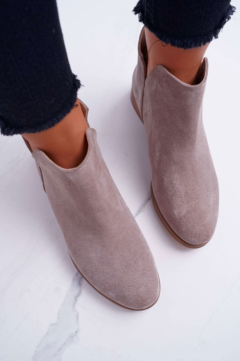 Botki Damskie Płaski Obcas Wiosenne Skórzane Cappuccino Madness