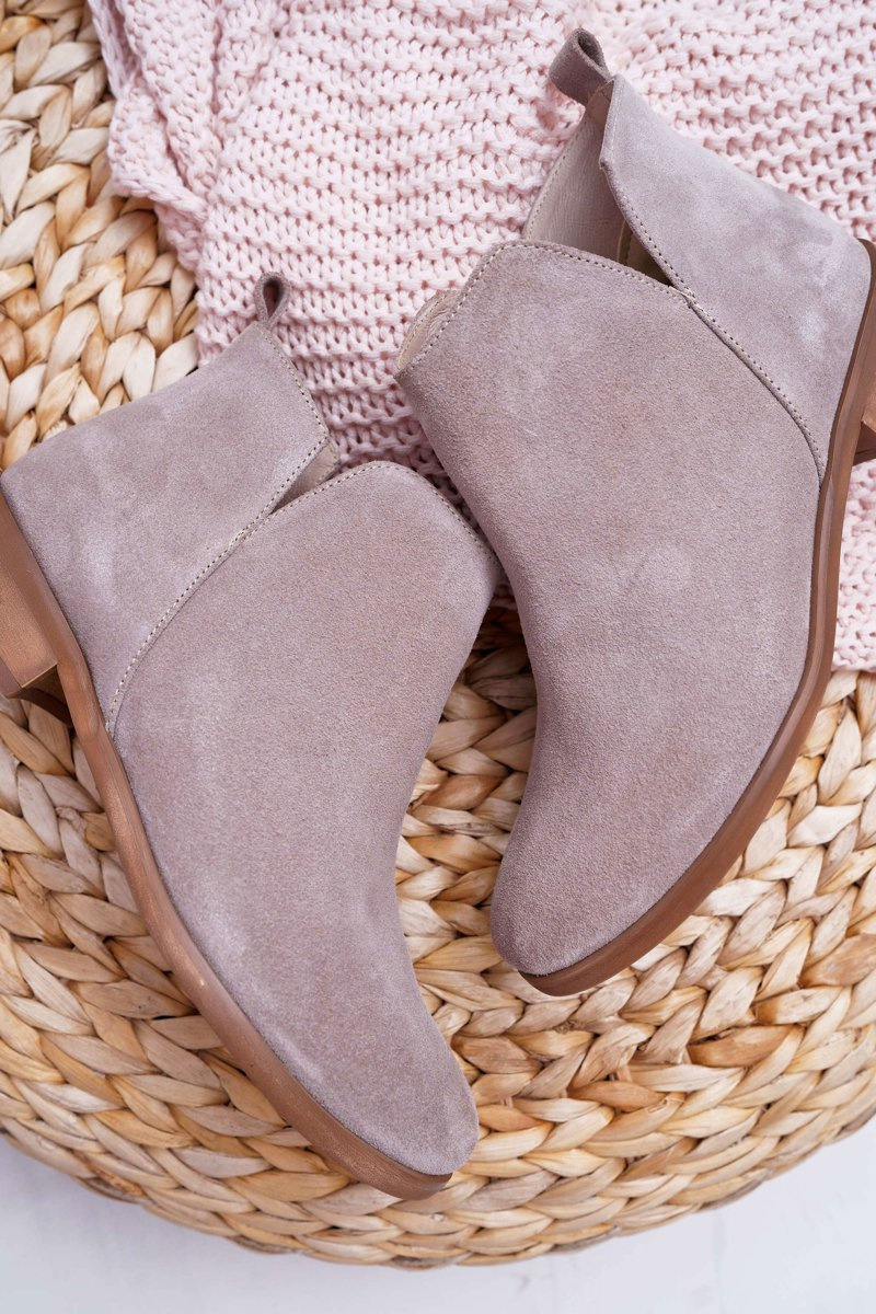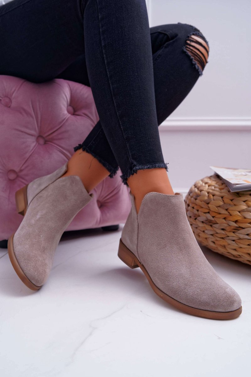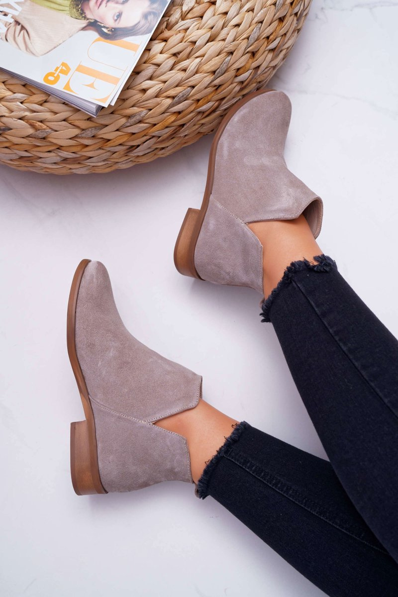 Botki to nie tylko buty na chłodne dni. Świetnie sprawdzą się również podczas tworzenia wiosennych stylizacjach. Botki posiadają delikatne wycięcia na wysokości kostek. Płaski obcas oraz wzór w panterkę, który stał się bardzo modny w tym sezonie. Botki w całości wykonane ze skóry zamszowej. Produkt Polski, co gwarantuje nam komfort oraz wysoką jakość wykonania. Idealne do zwiewnych sukienek oraz jeansowych spodni. Przy wyborze rozmiaru prosimy sugerować się tabelą rozmiarów.