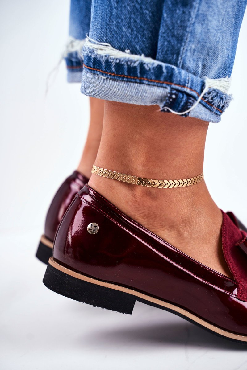 Damskie Półbuty Maciejka Lakierowane Loafery Bordowe 04099-44/00-1