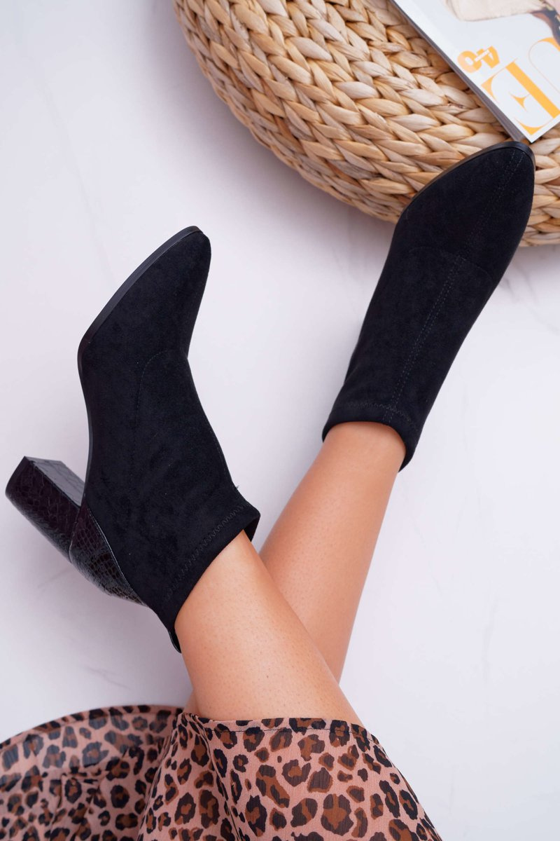 Botki Damskie Zamszowe Na Słupku Czarne Ferrous