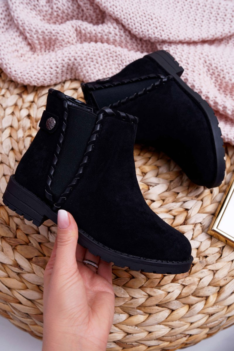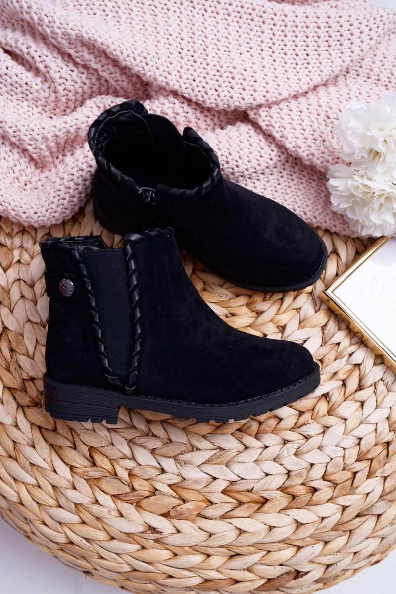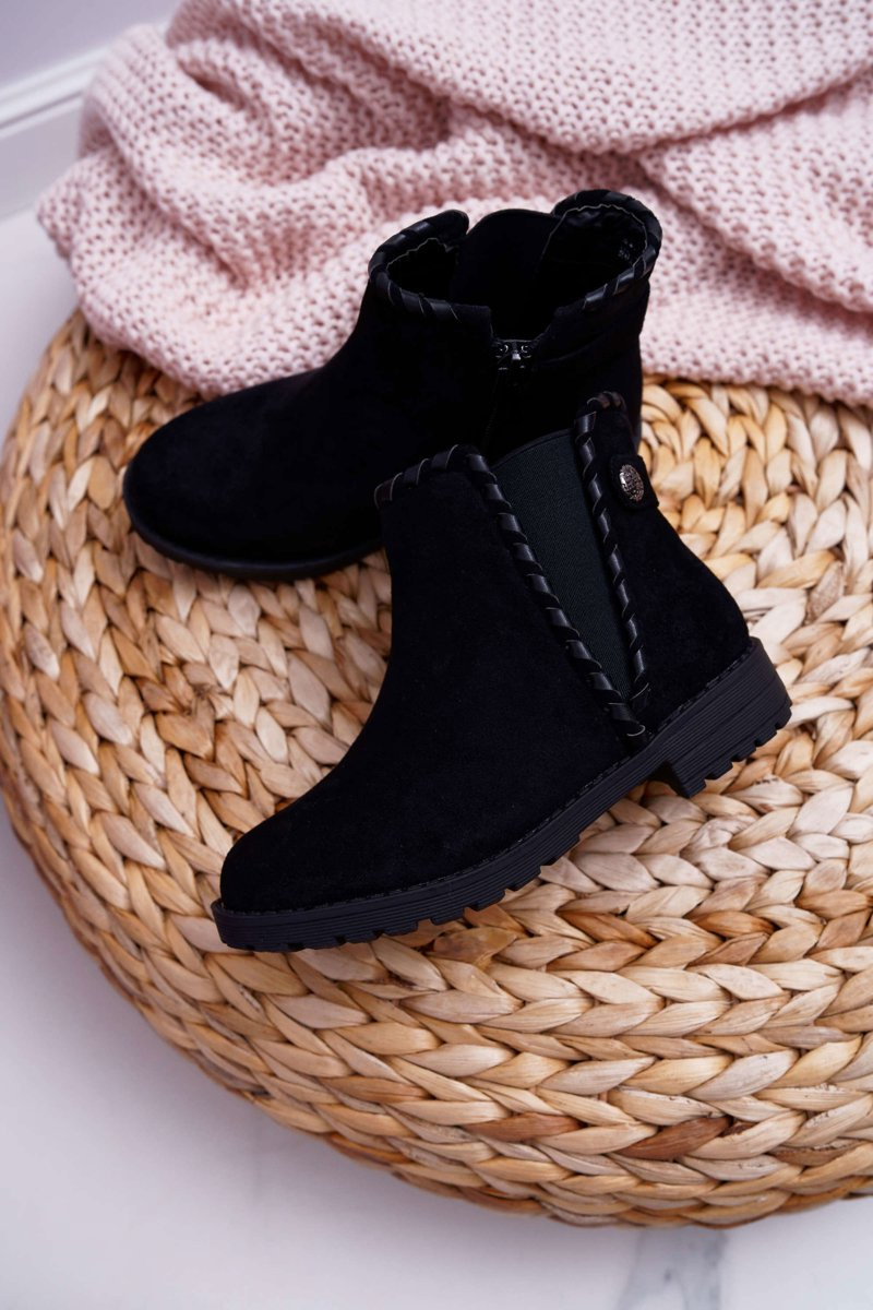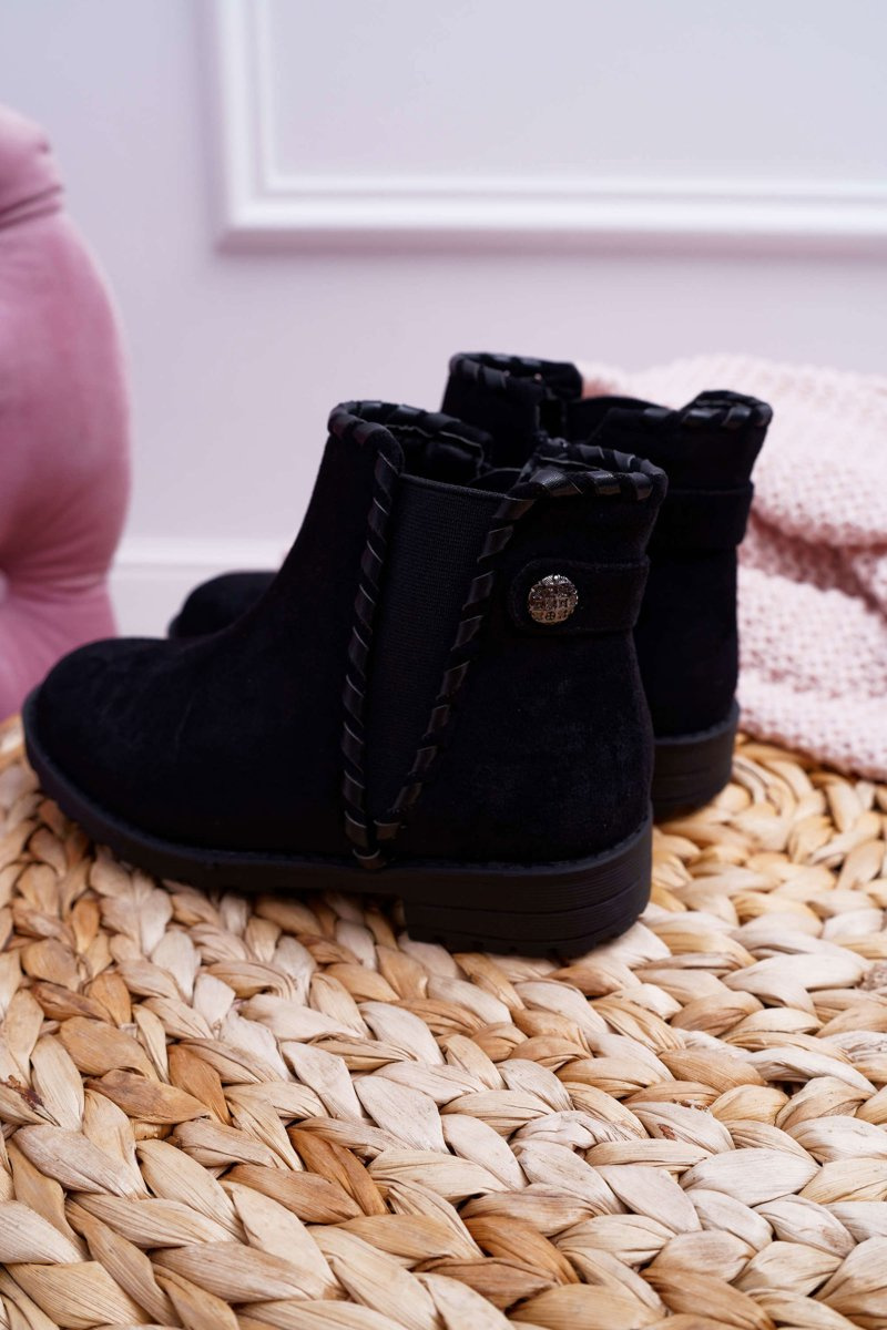 Młodzieżowe Botki Czarne Płaski Obcas Sicarro