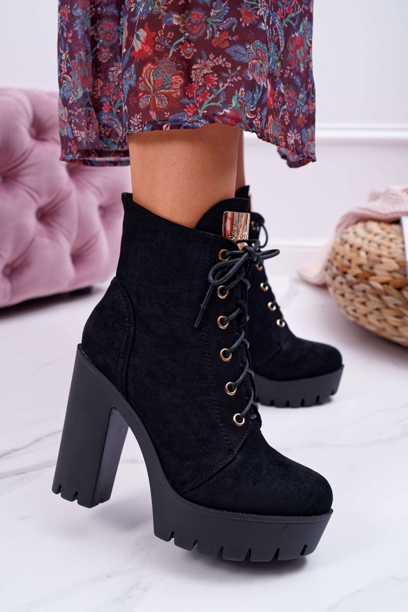 Damskie Wysokie Botki Czarne Zamszowe Grunge Midow