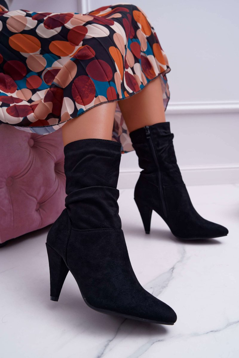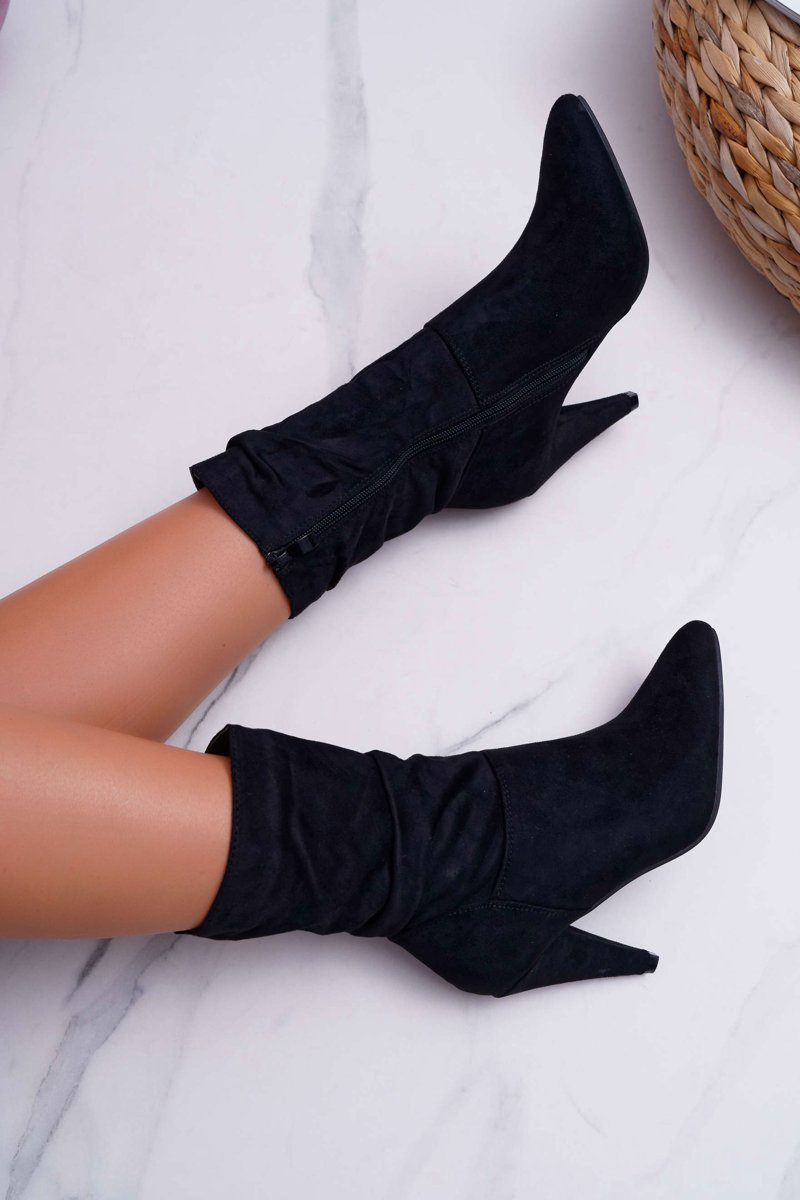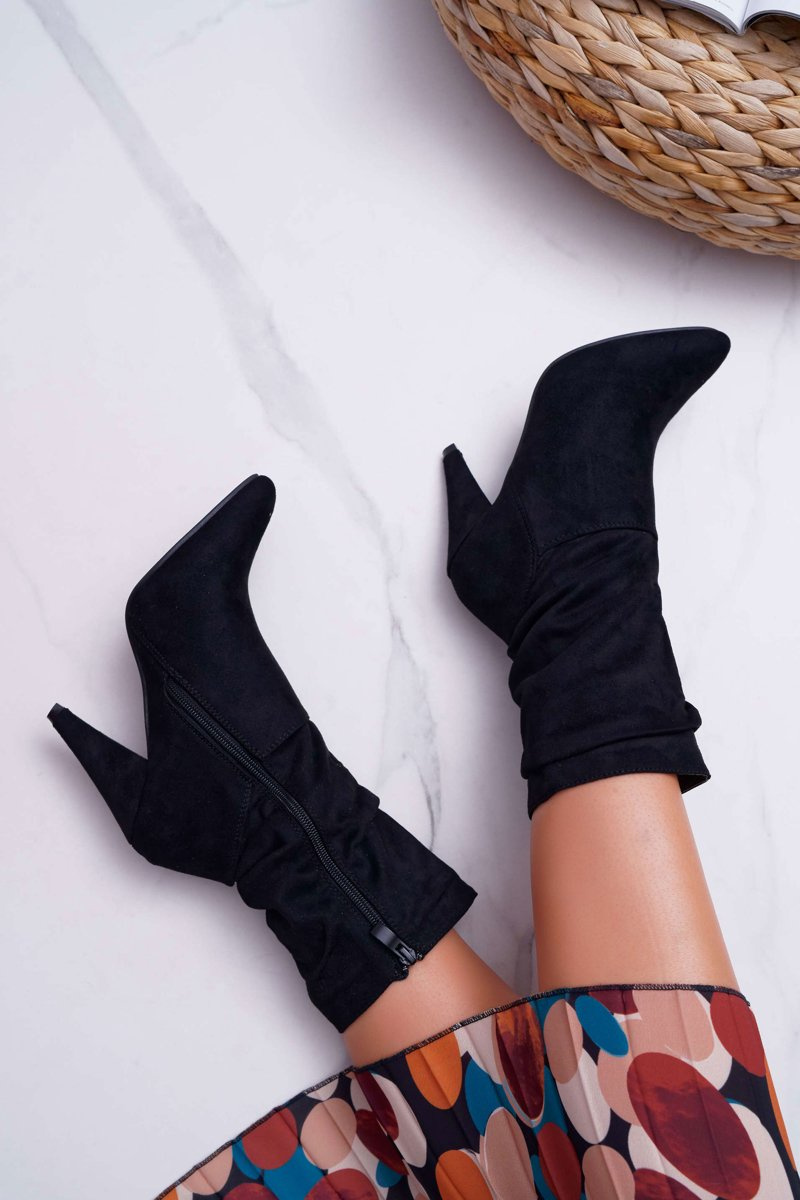 Botki Damskie Na Słupku Za Kostkę Ocieplane Czarne Temma