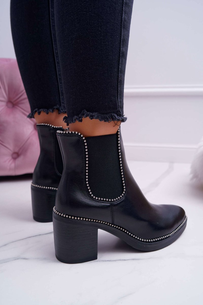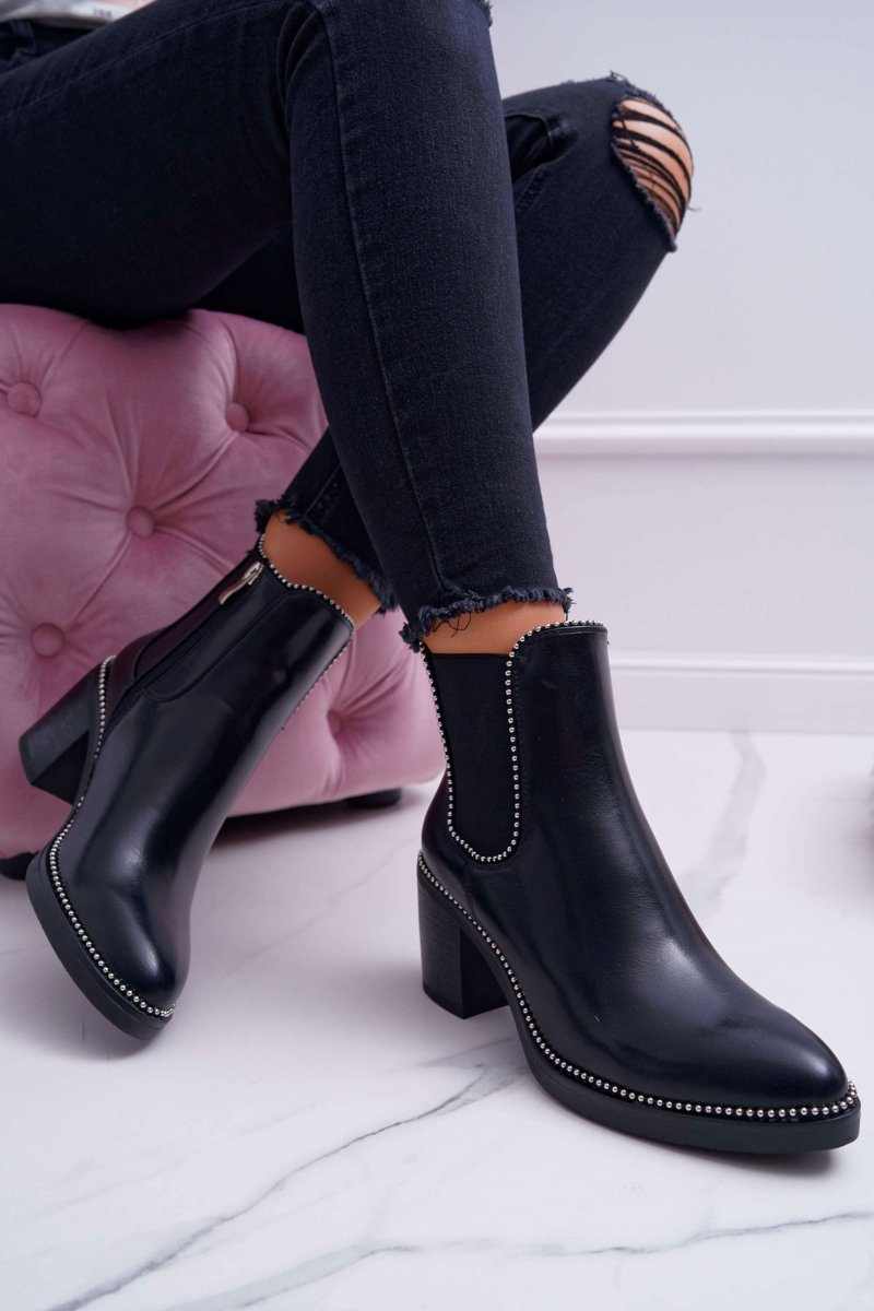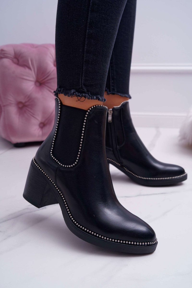 Botki Damskie Na Obcasie Z Dżetami Czarne Rhythmic