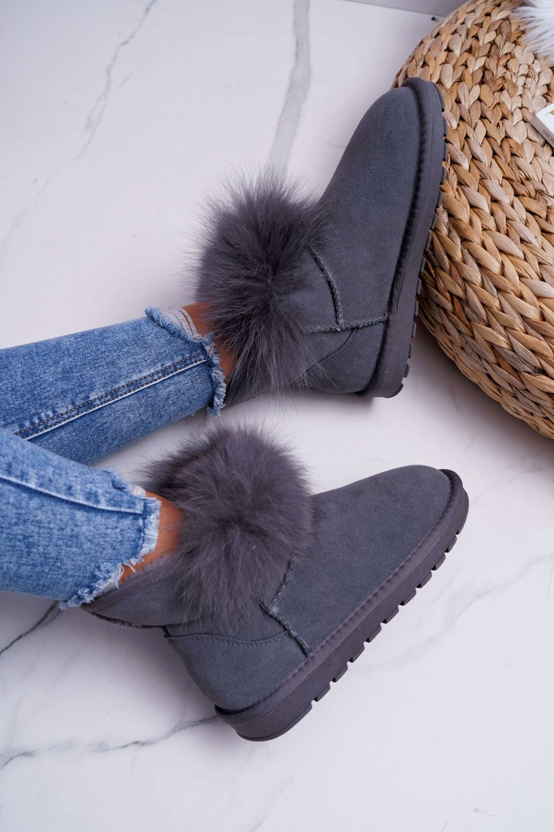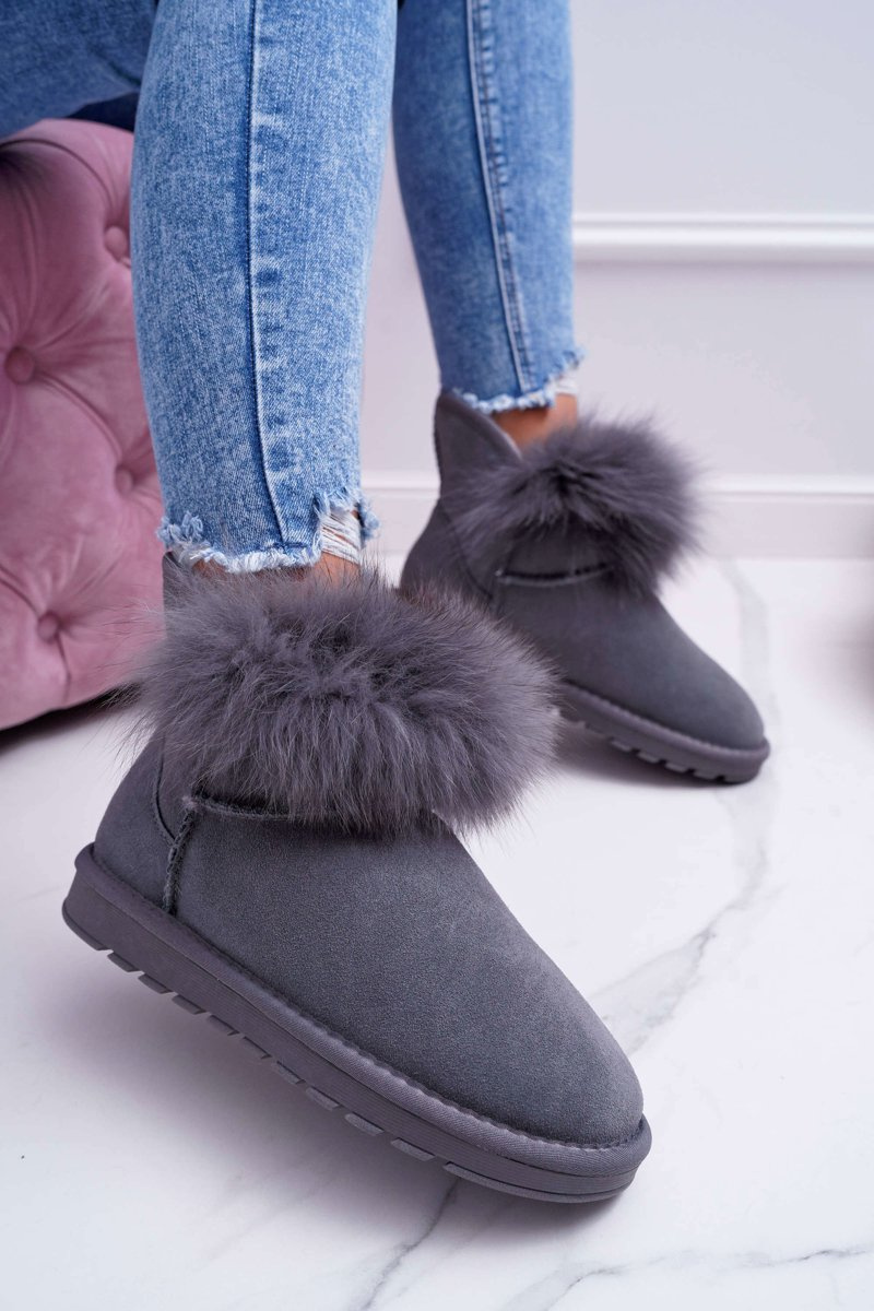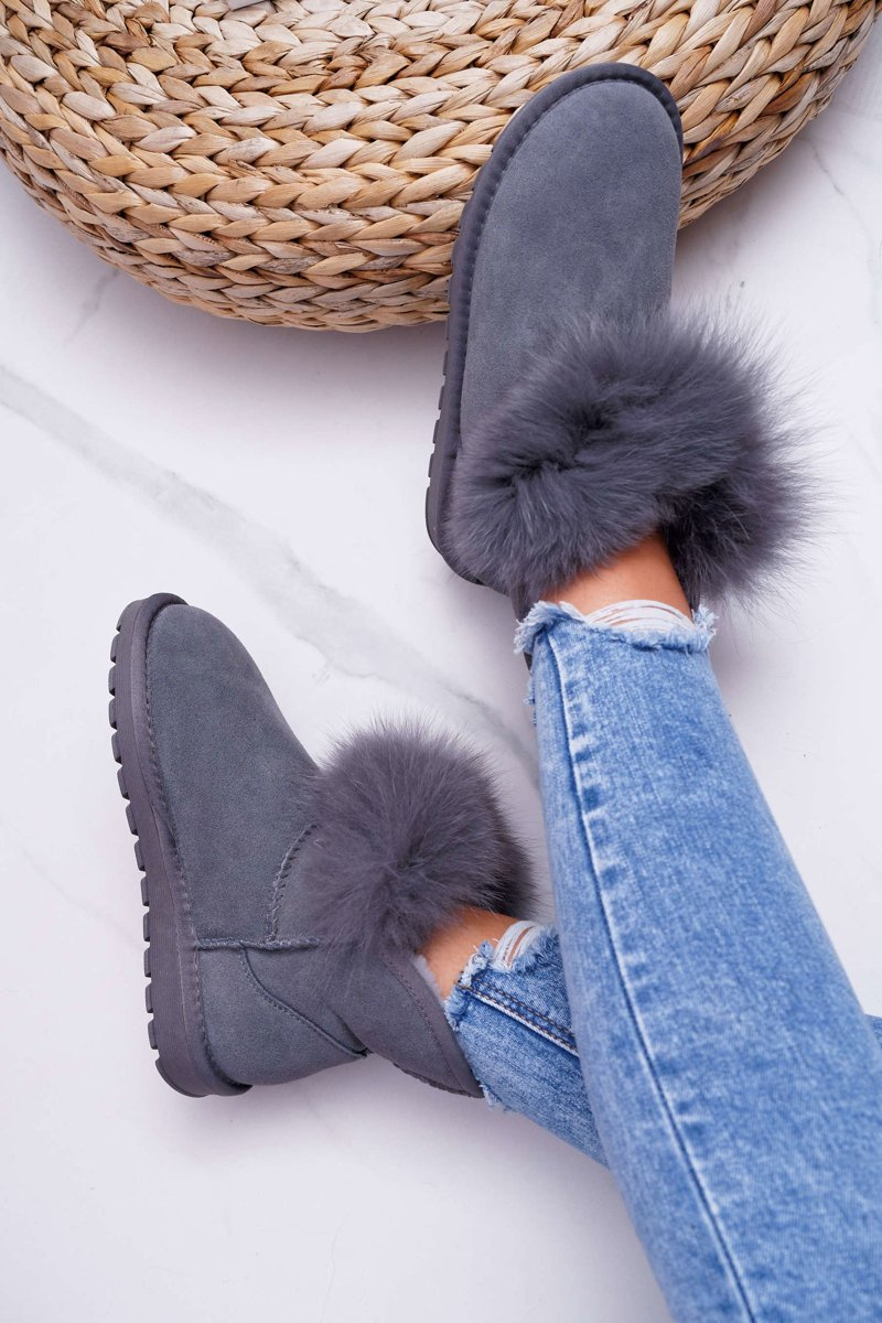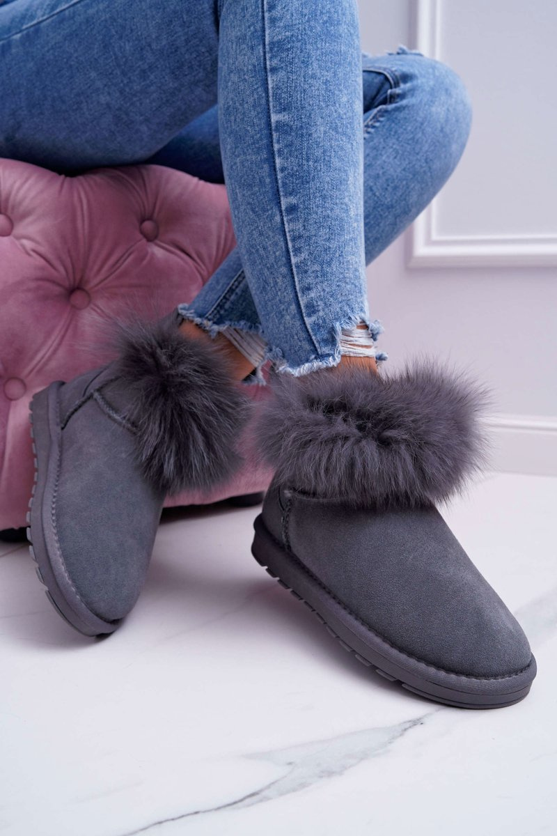 Damskie Botki Śniegowce Ocieplane Futerkiem Skóra Zamsz Szare Memento
