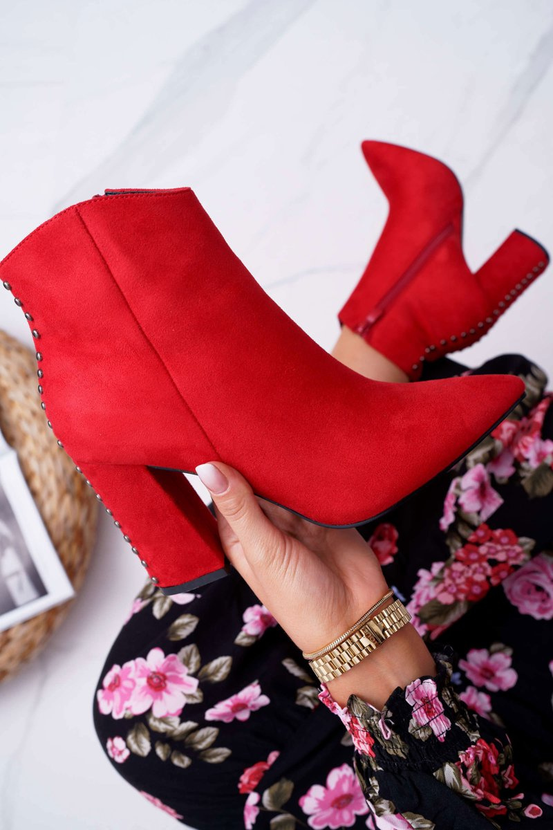 Botki Damskie Na Obcasie Z Nitami W Szpic Czerwone Snack