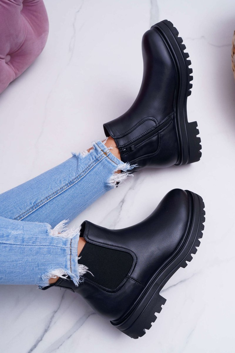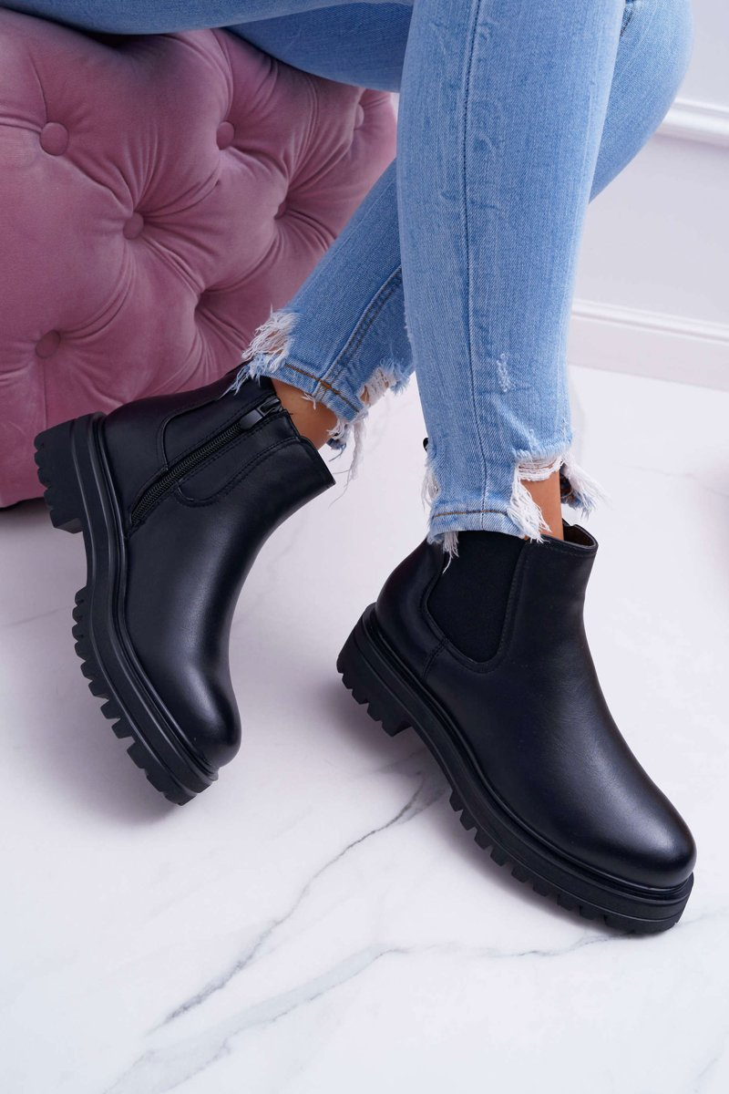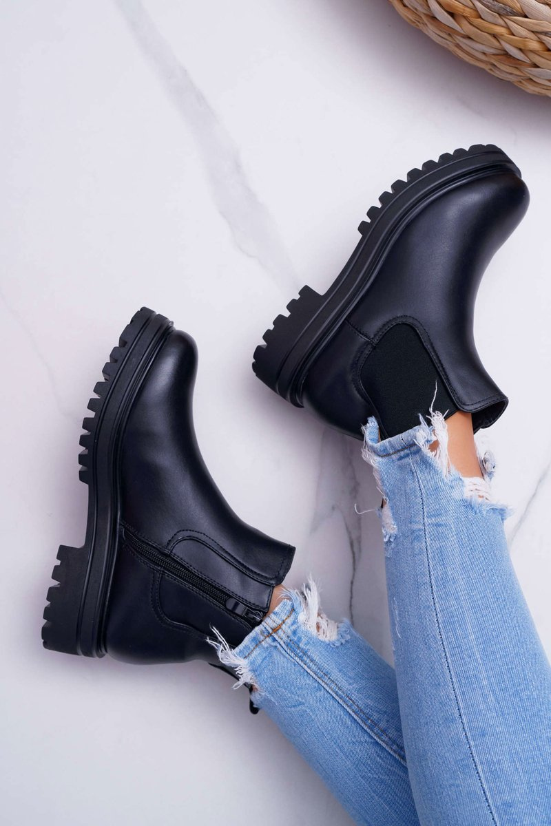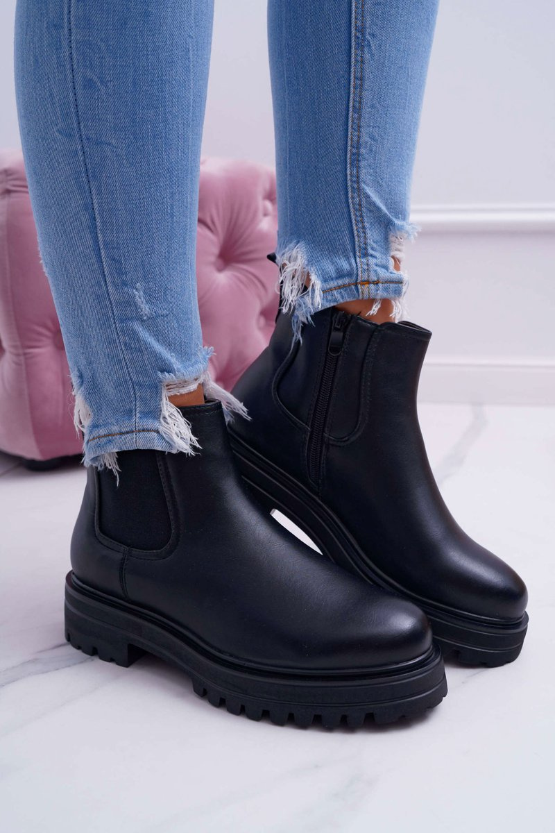Botki Damskie Płaski Obcas Ciepłe Czarne Orion