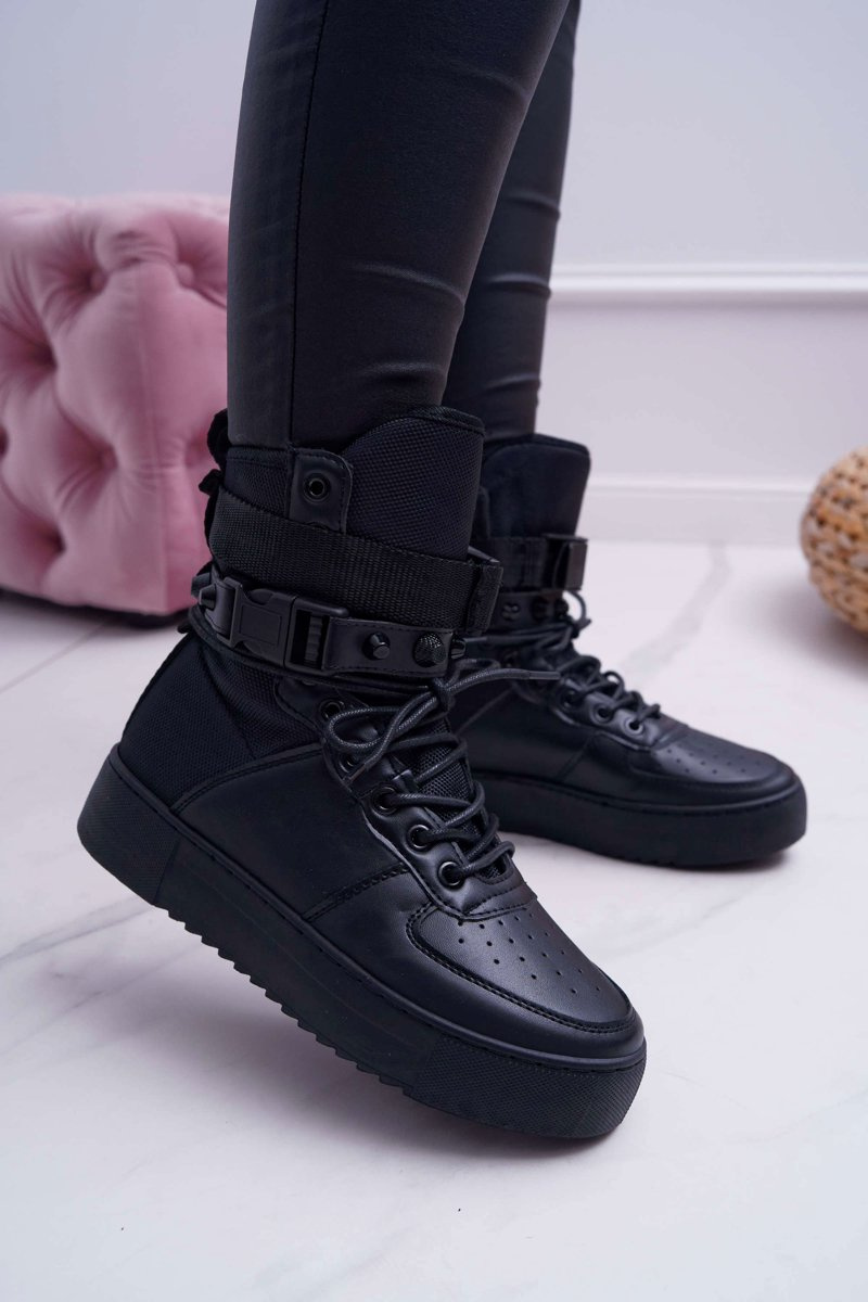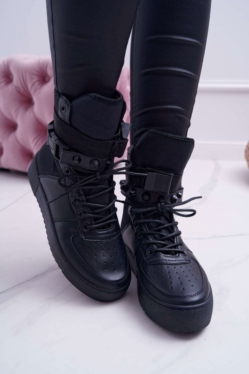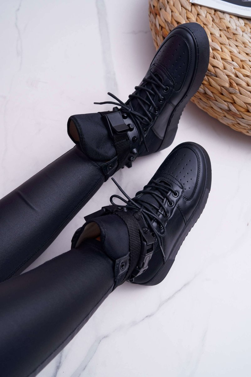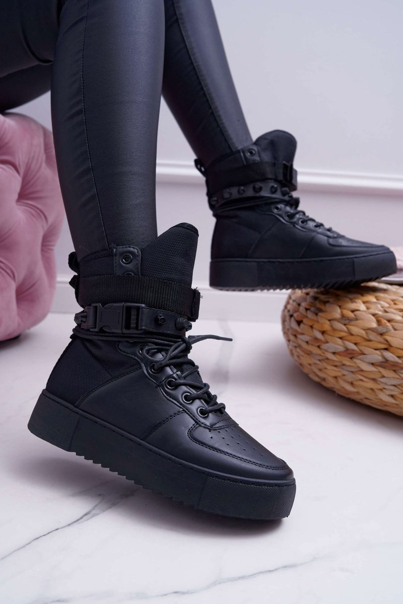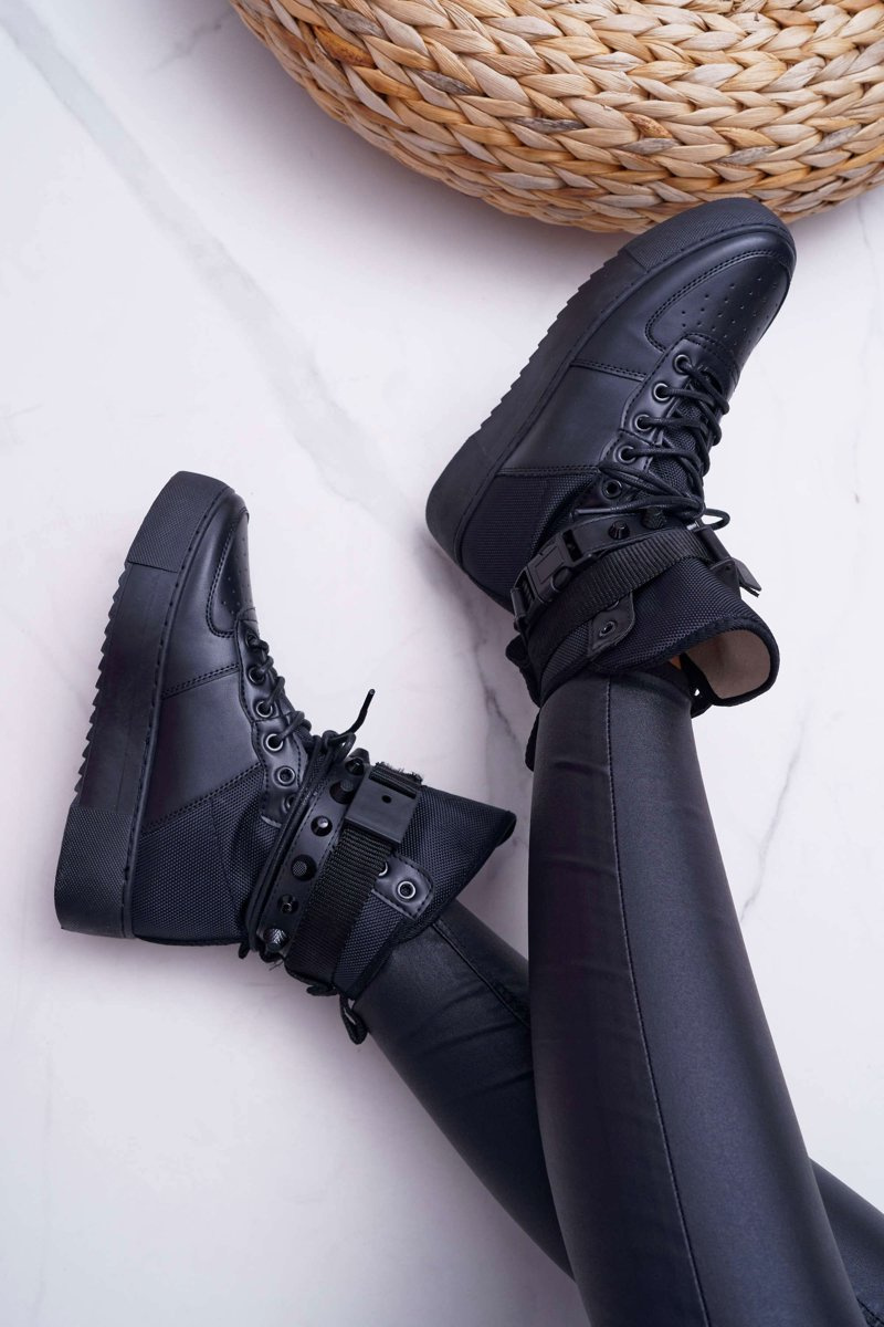 Sportowe buty damskie z wysoką cholewką. Posiadają dwa paski, które oplatają kostkę (można je zdjąć). Wykonane ze skóry ekologicznej.