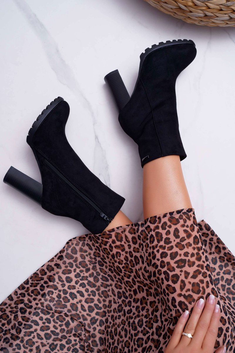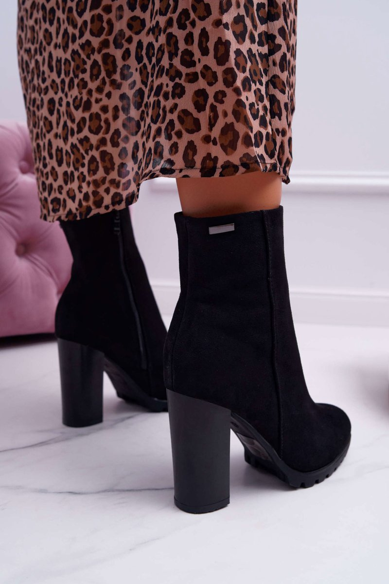 Botki Damskie na Słupku Zamszowe Czarne Cadillac