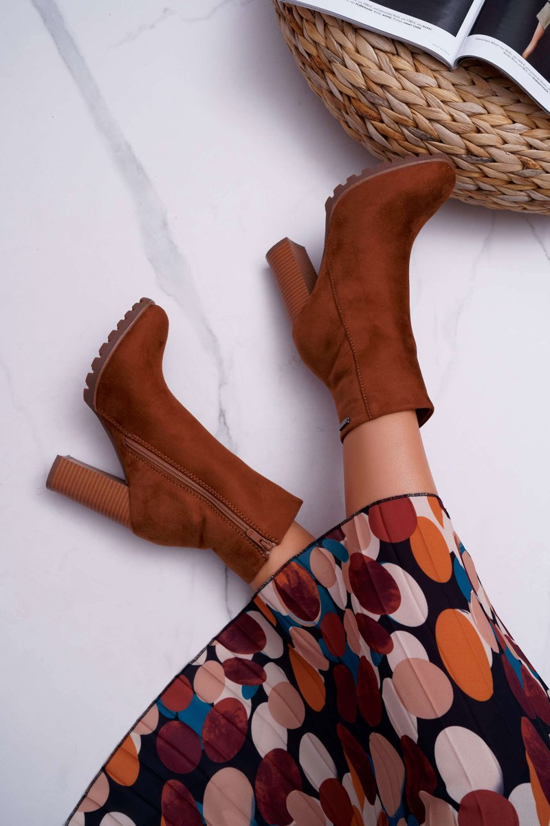 Botki Damskie na Słupku Zamszowe Camel Cadillac