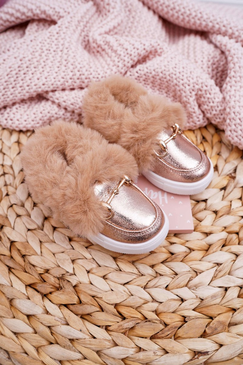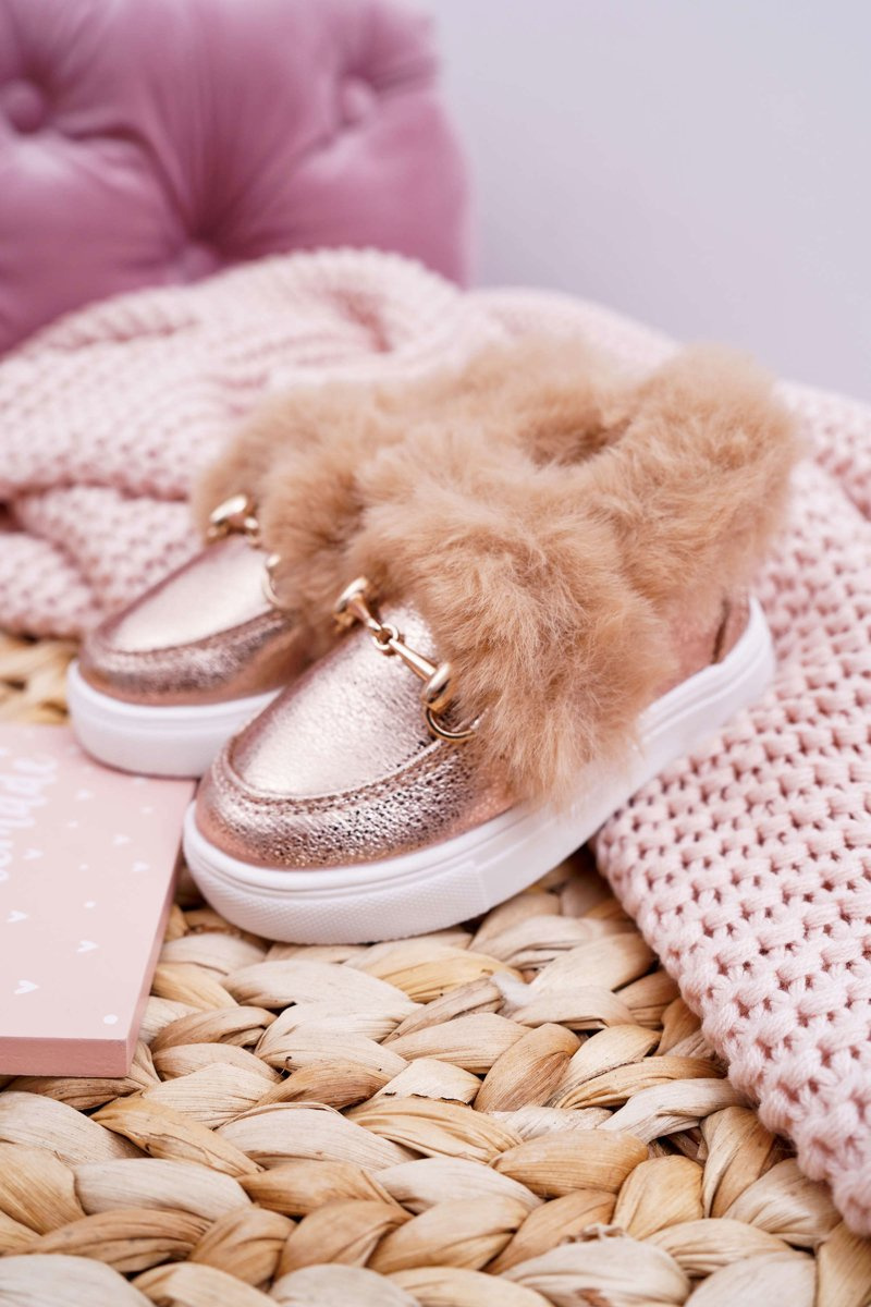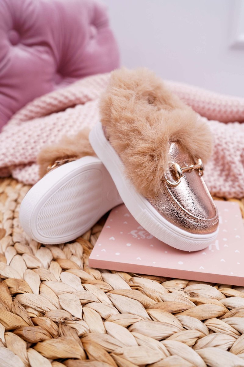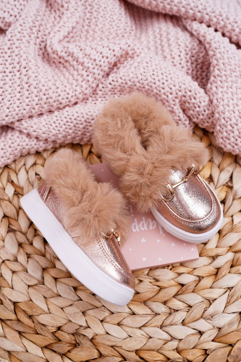 Dziecięce Tenisówki Z Futerkiem Ocieplane Champagne Grendy