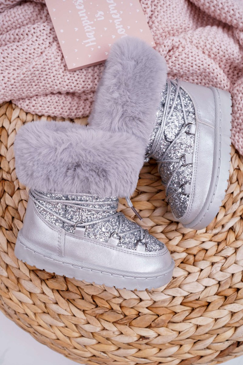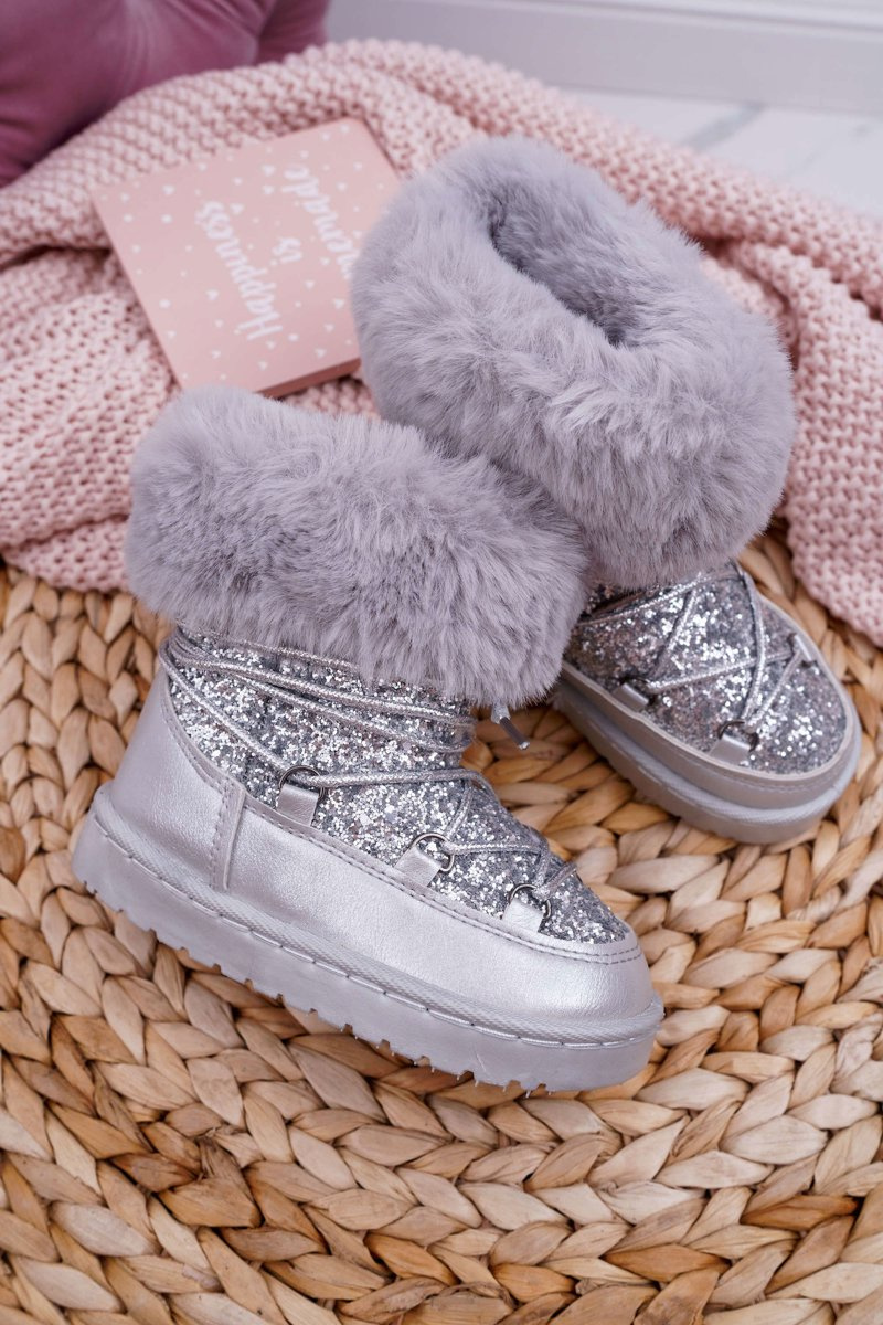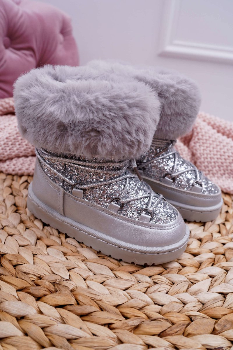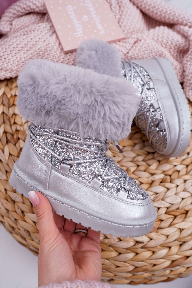 Dziecięce Ocieplane Botki Śniegowce Z Futerkiem Srebrne Nicola
