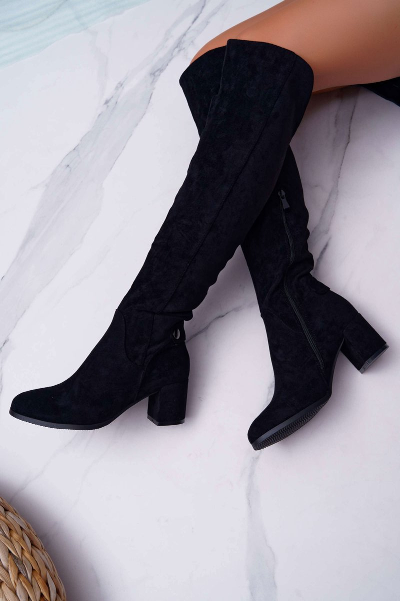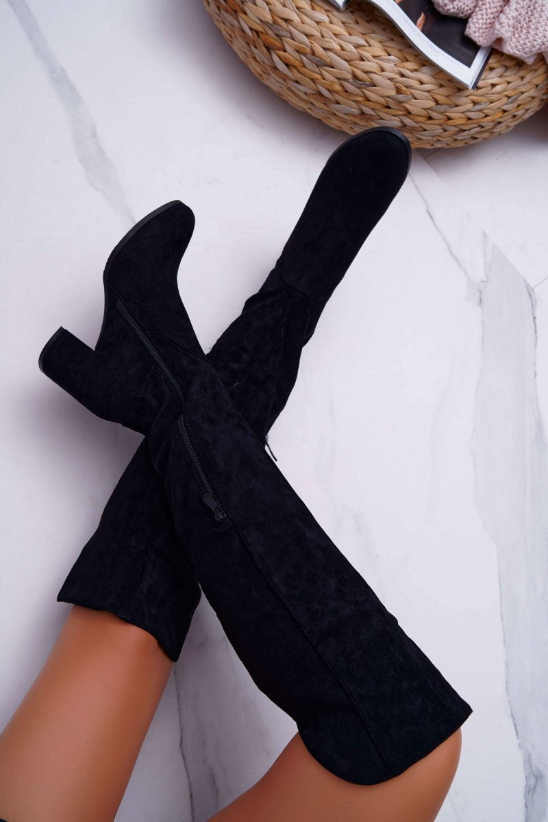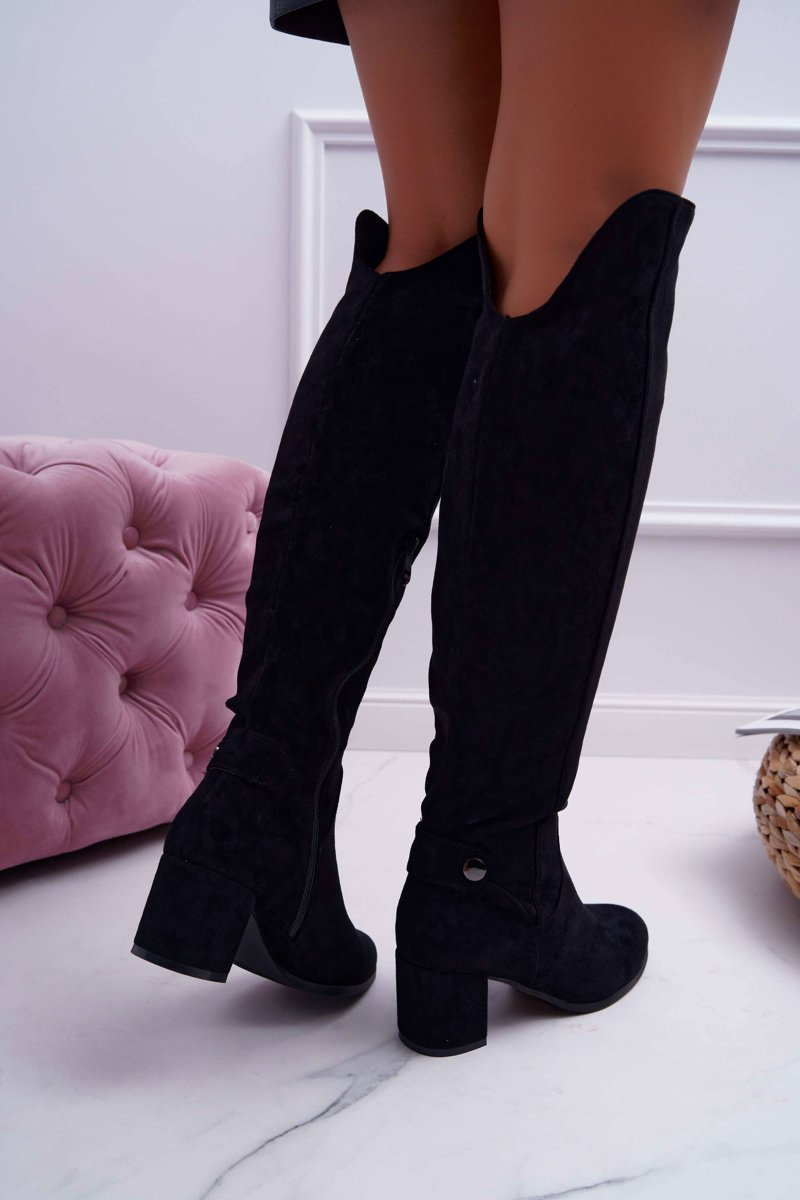 Kozaki Damskie Na Słupku Zamszowe Czarne Torgos
