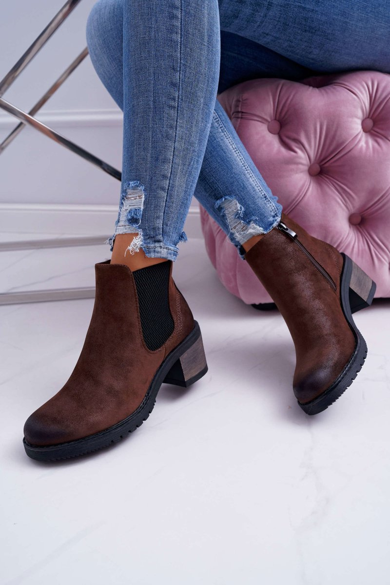Botki Damskie Na Obcasie Sergio Leone Brązowe BT702