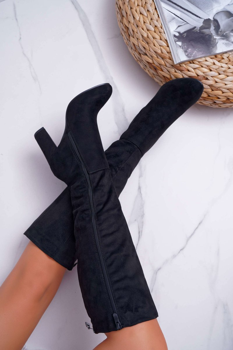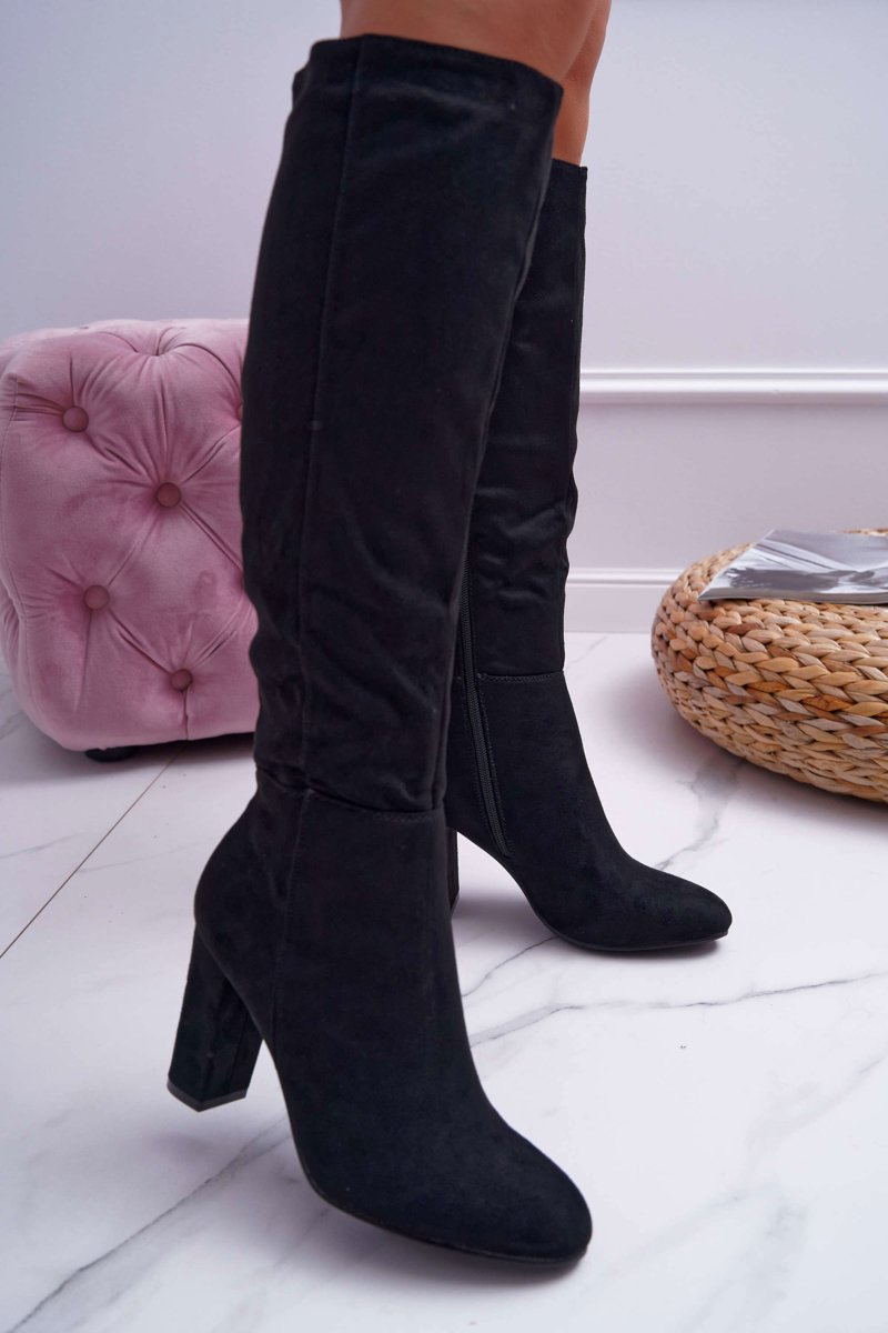 Kozaki Damskie Na Słupku Zamszowe Czarne Classy