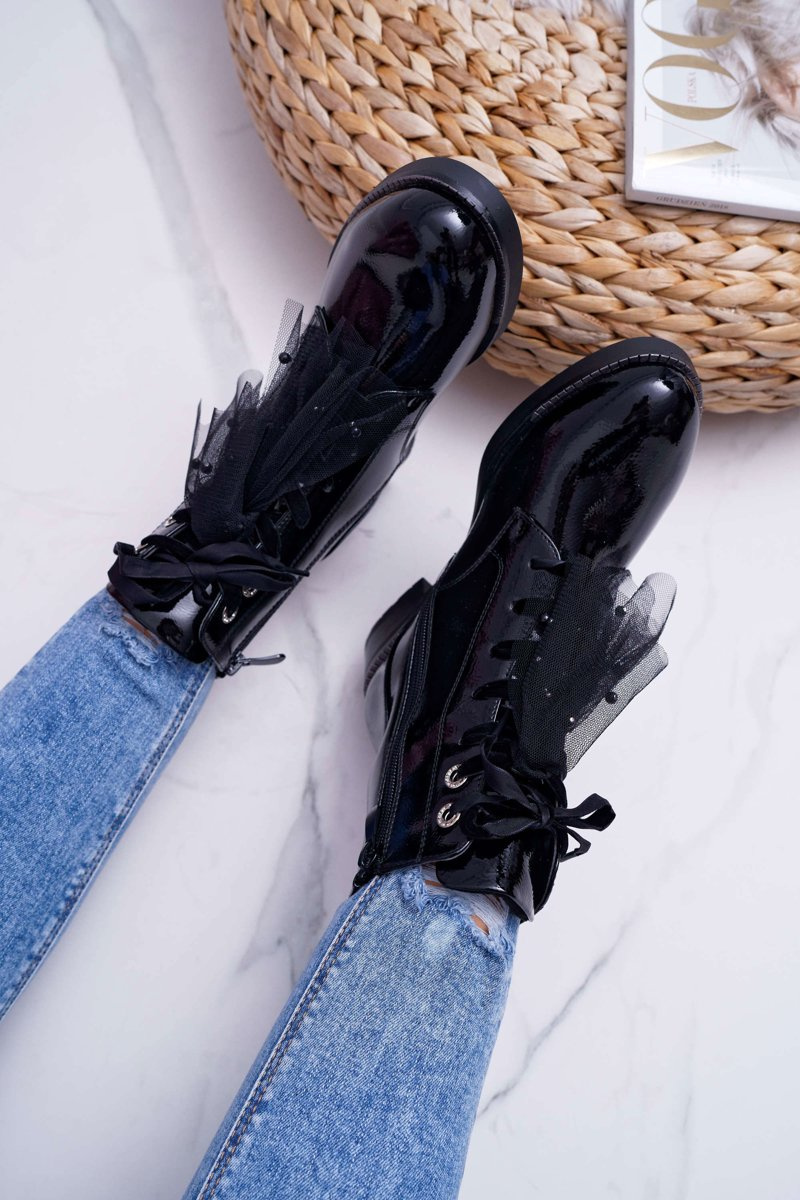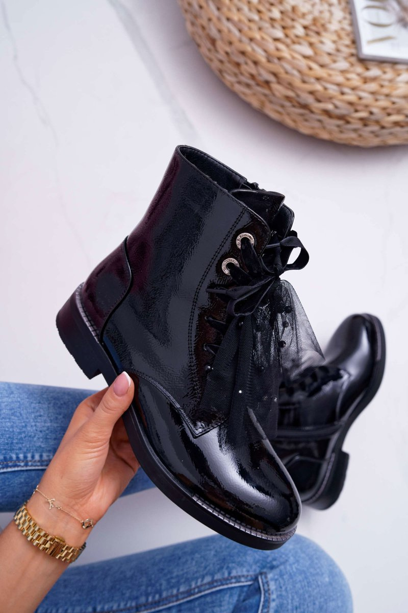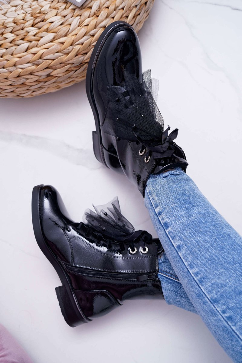 Botki Damskie Lakierowane Płaskie Czarne Barski 39-2
