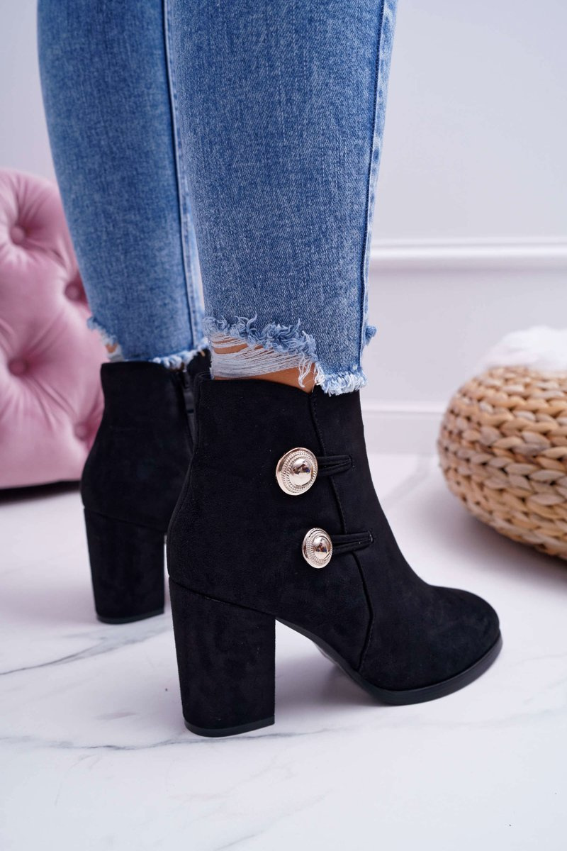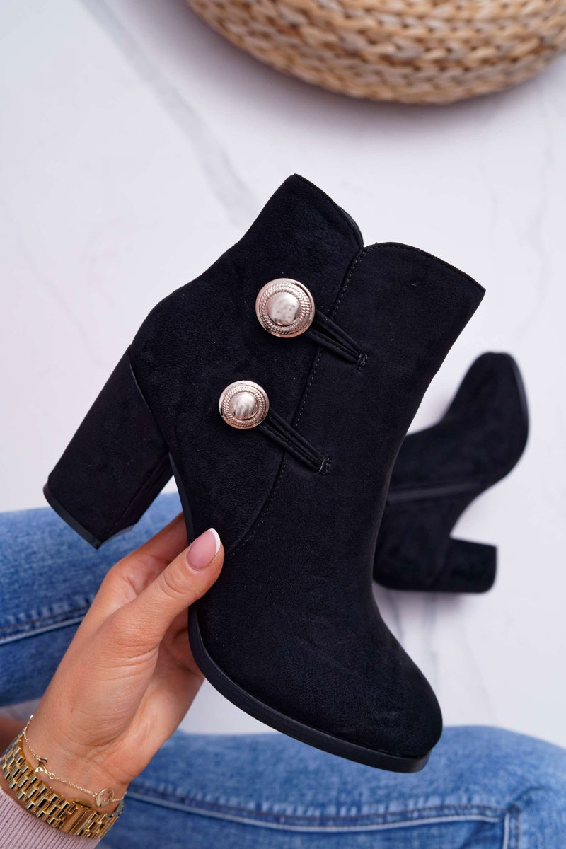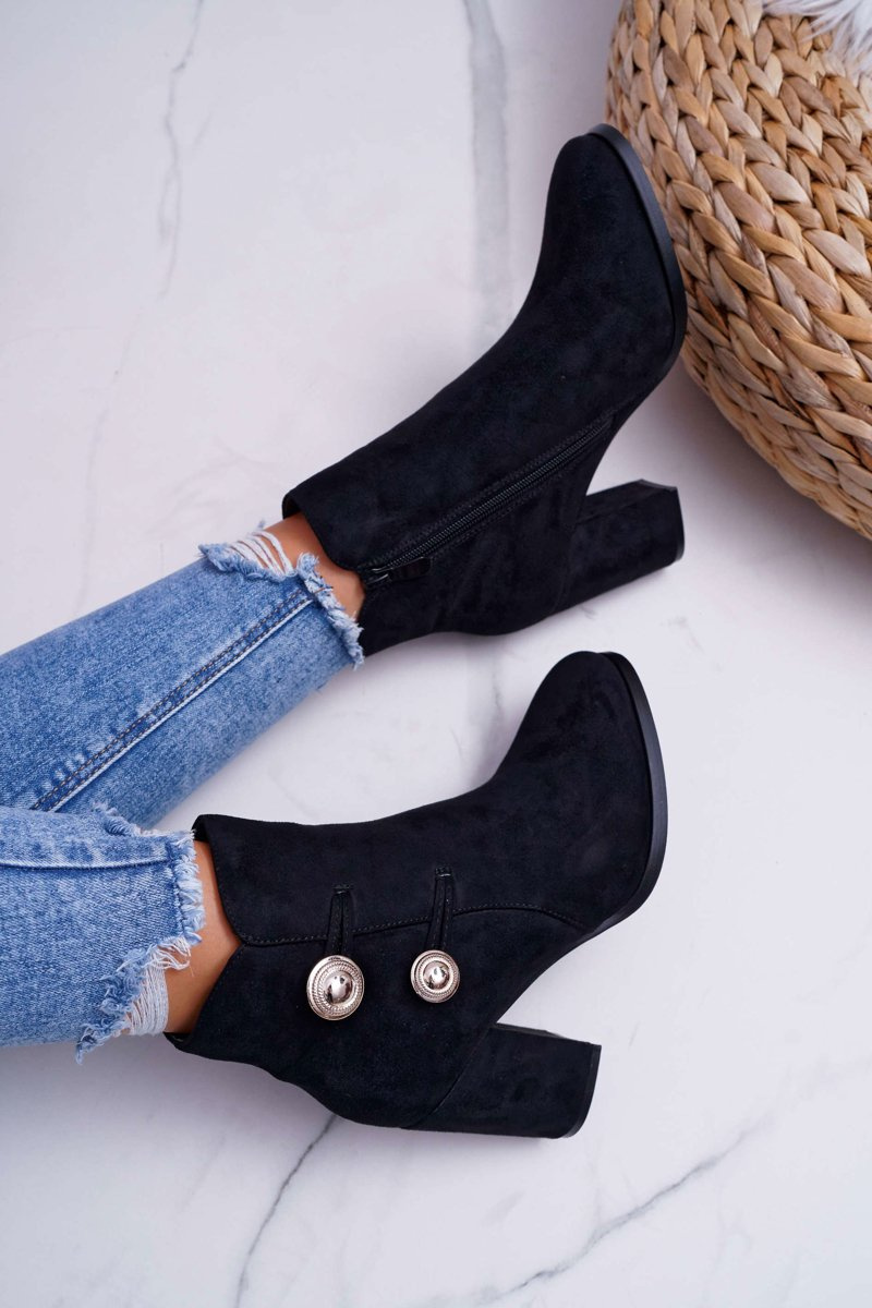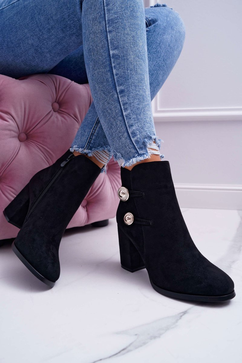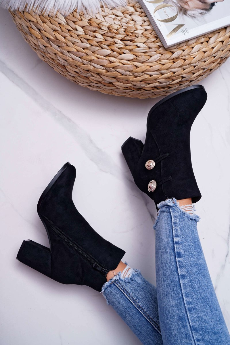 Botki Damskie Zamszowe na Słupku Czarne Barski 73-2