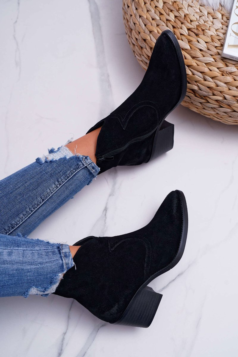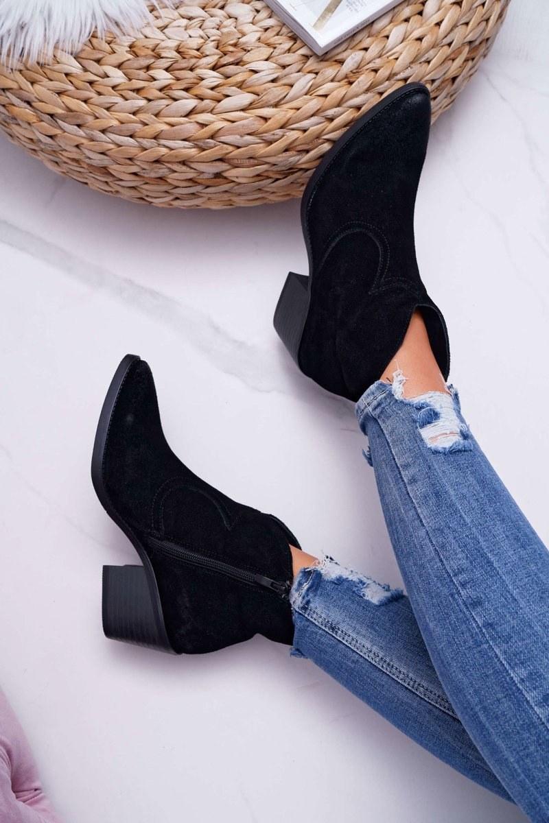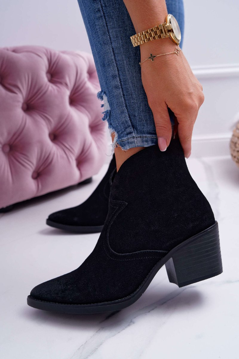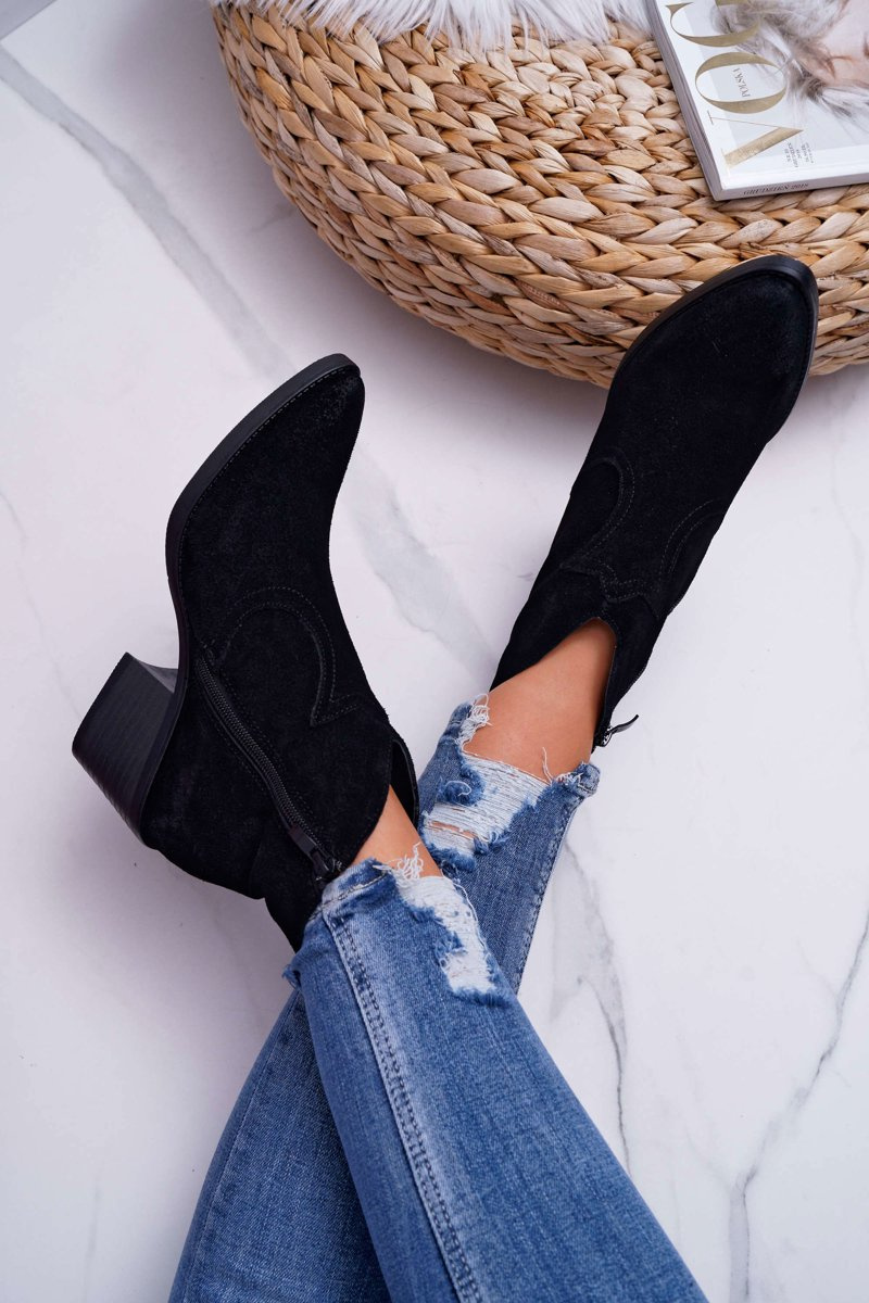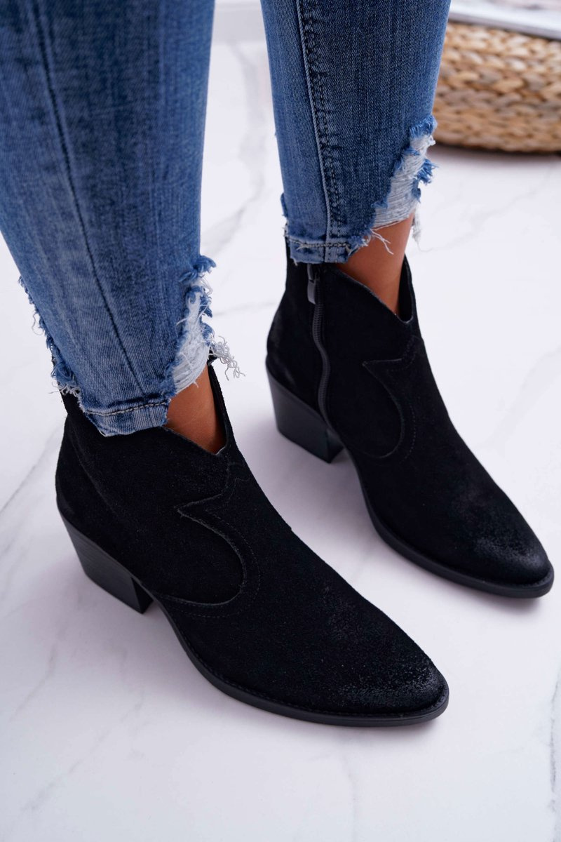 Damskie Botki Kowbojki Zamszowe Czarne Barski 1638