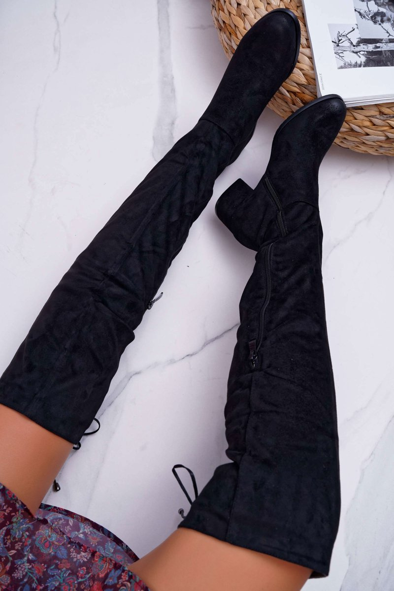 Czarne Damskie Kozaki Ocieplane Zamszowe Barski 98-7