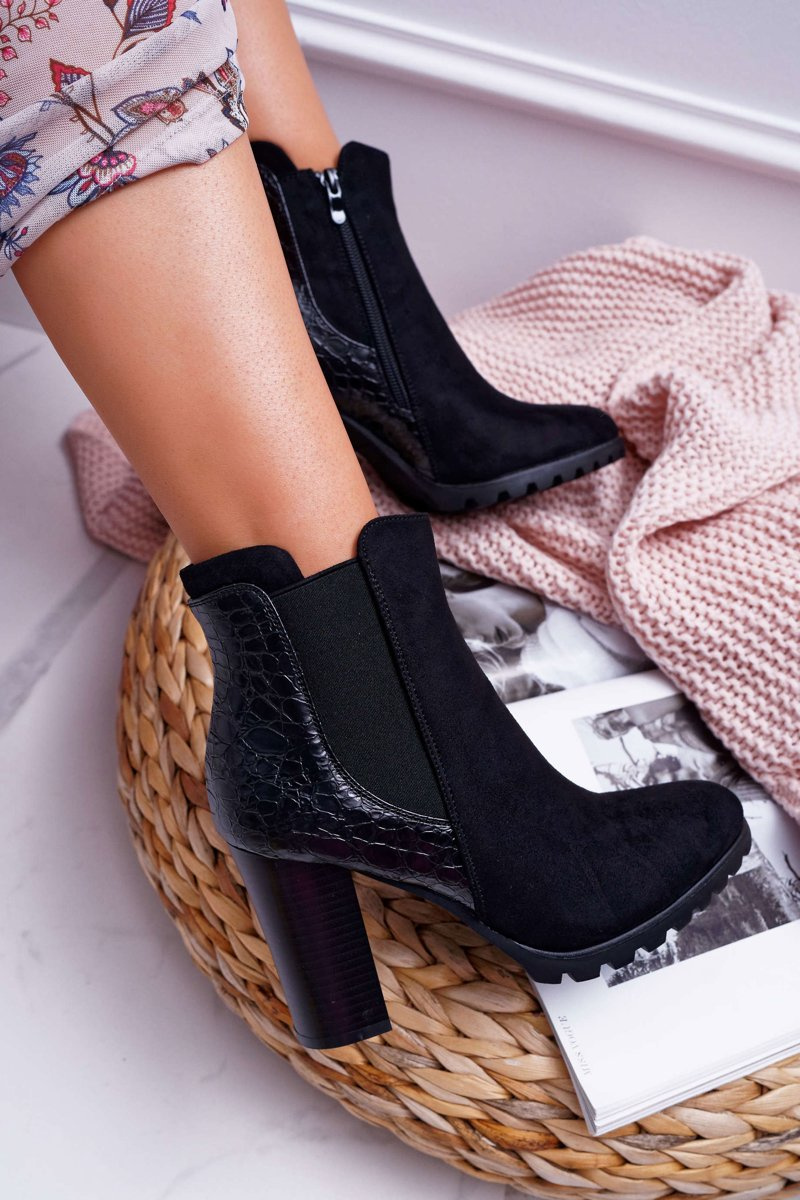 Botki Damskie Na Obcasie Czarne Mondego