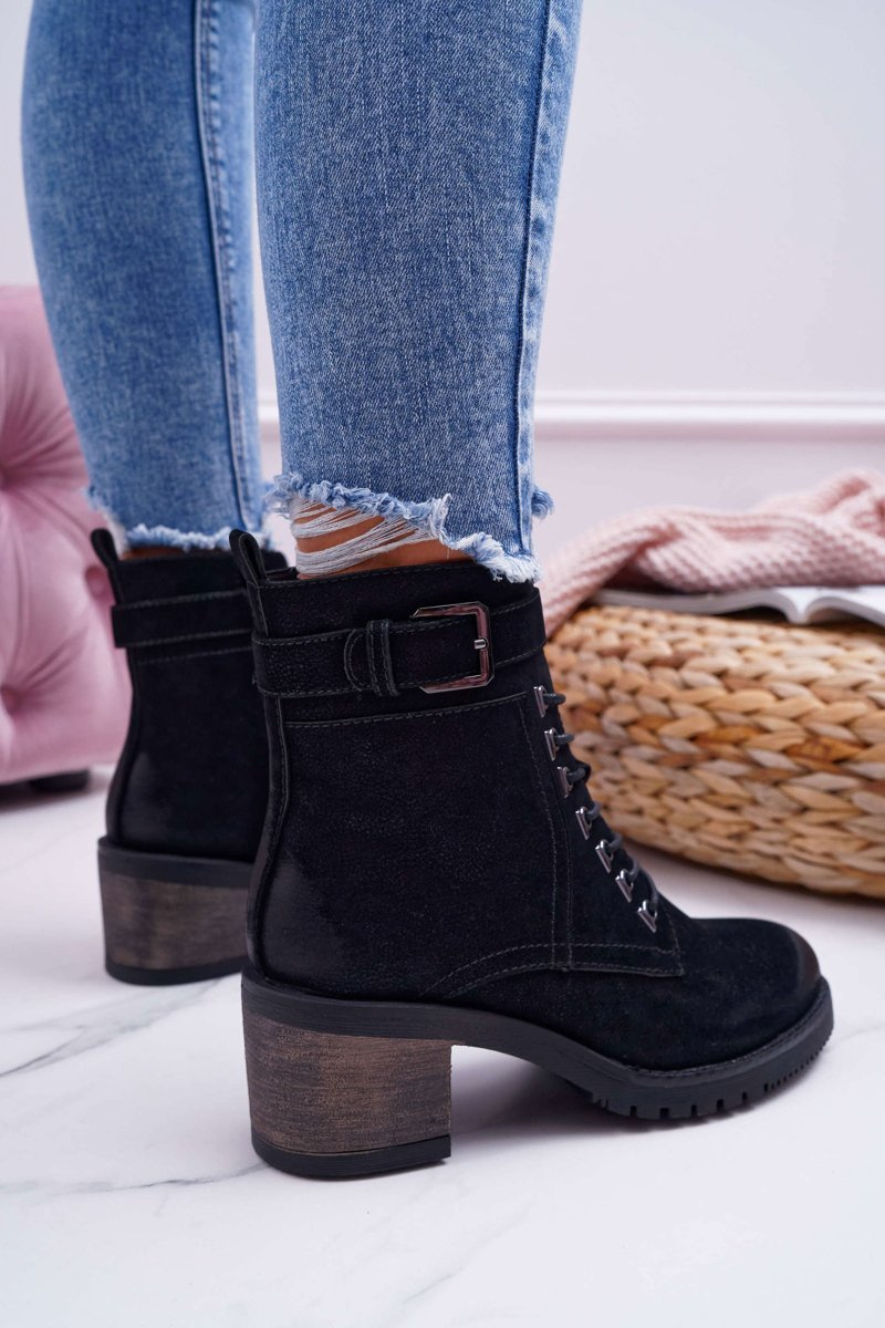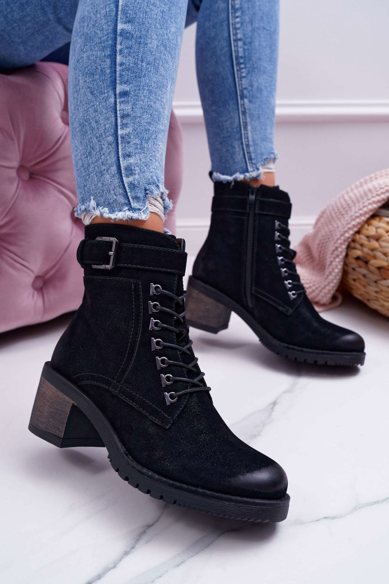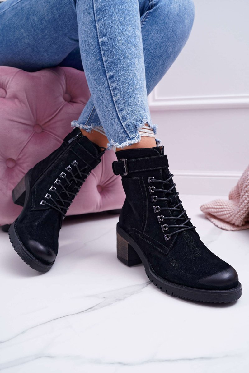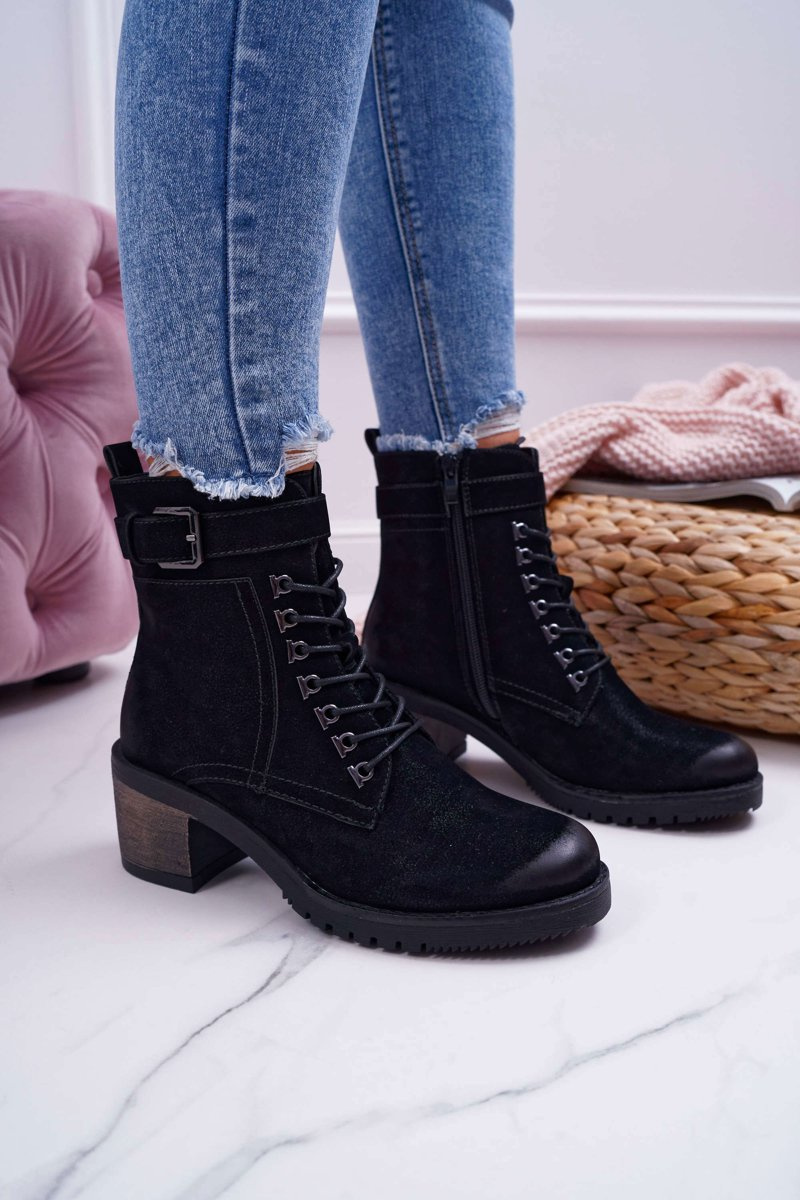 Damskie Botki Workery Sergio Leone Czarne BT705
